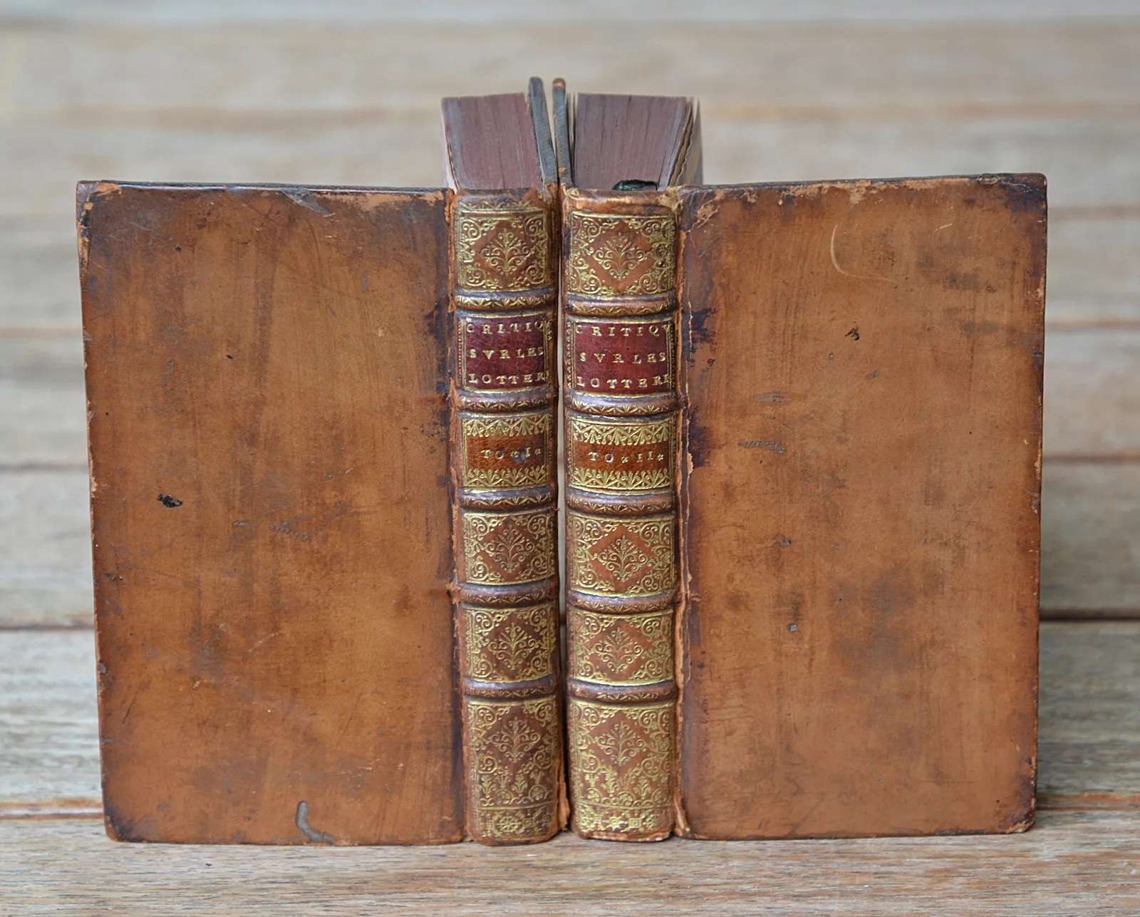 Charnières fendillées ; accrocs sur les coiffes ; épidermures.