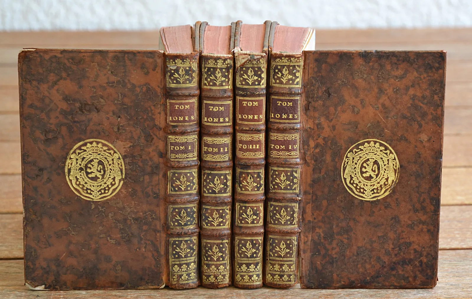 Accrocs avec perte de cuir sur les coiffes supérieures ; 8 mors fendillés avec petites pertes de cuir, cf. photos ; coins émoussés ; infime galerie de ver sur les 4 premiers feuillets du T3.