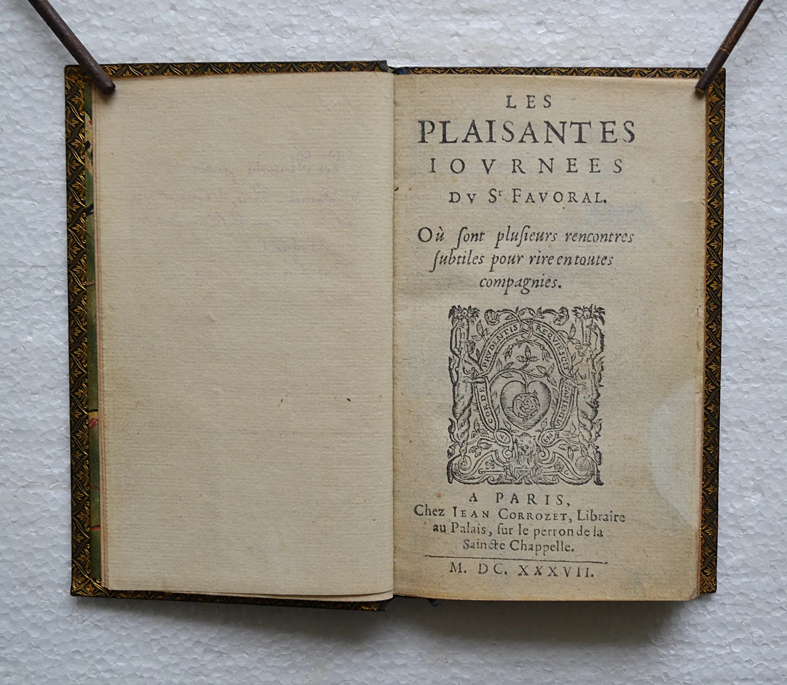 A Paris, chez Jean Corrozet, Libraire au Palais, sur le perron de la Saincte Chappelle, 1637.