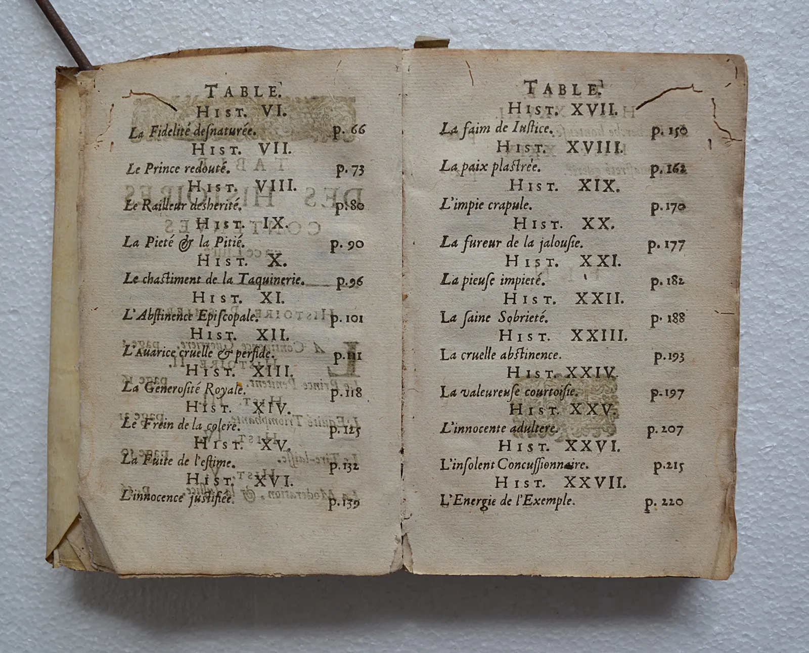 Salissures sur les plats ; charnières intérieures cassées : le texte est désolidarisé avec la reliure ; travail de ver sur la partie supérieure des feuillets, principalement sur les feuillets liminaires et les Tables ; quelques coins cornés et des rousseurs.