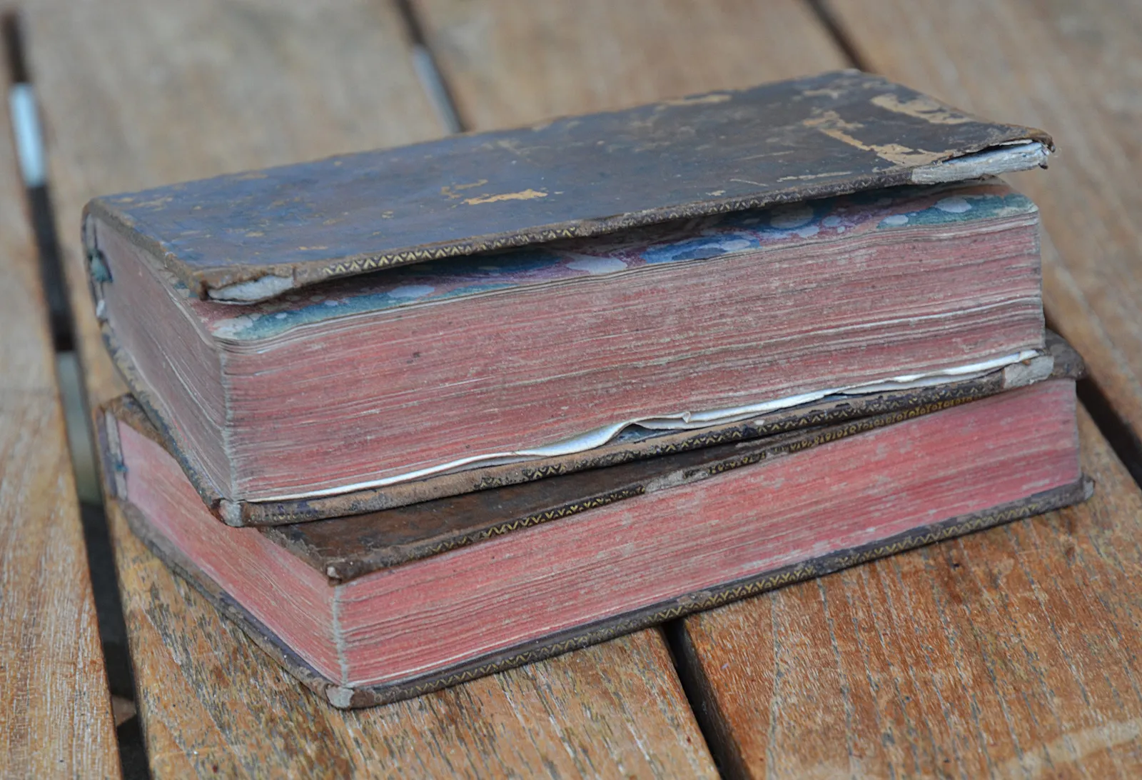 Deux volumes in-12 (10 x 16 cm.) de (7ff.) – 379 pp. + (1f.) – 338 pp. ; veau fauve marbré, dos à nerfs ornés, roulette dorée sur les coupes, tranches rouges (reliure de l’époque).