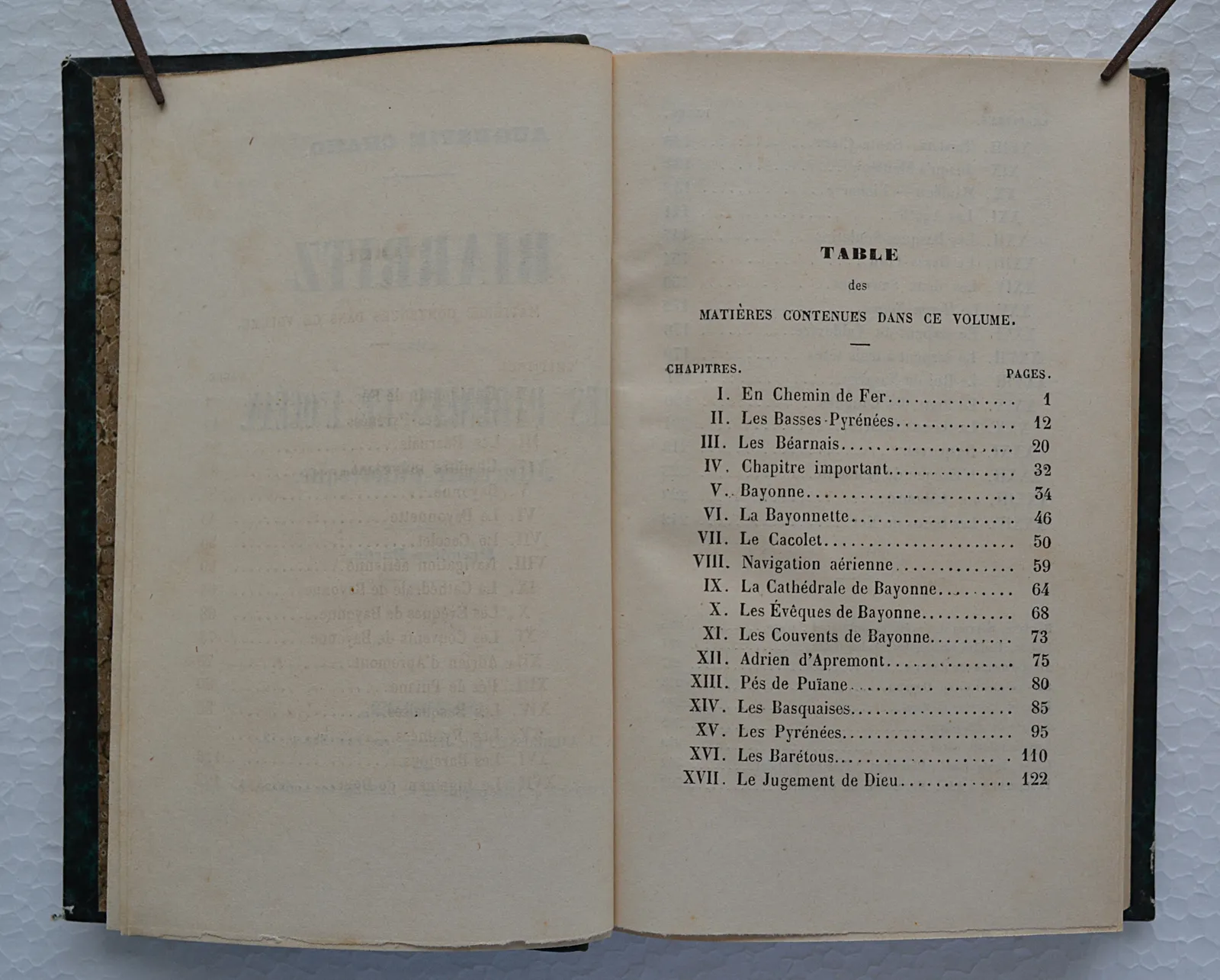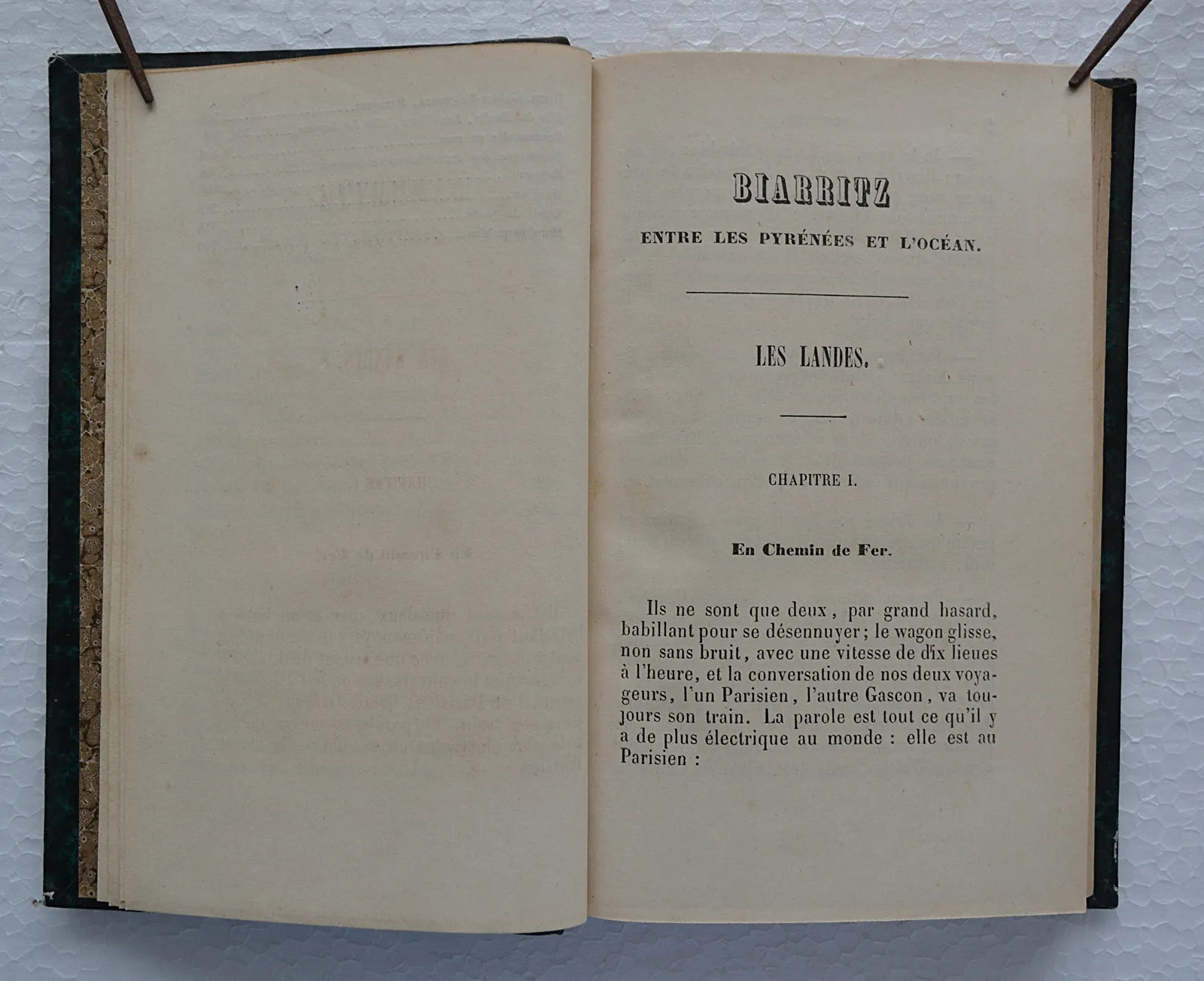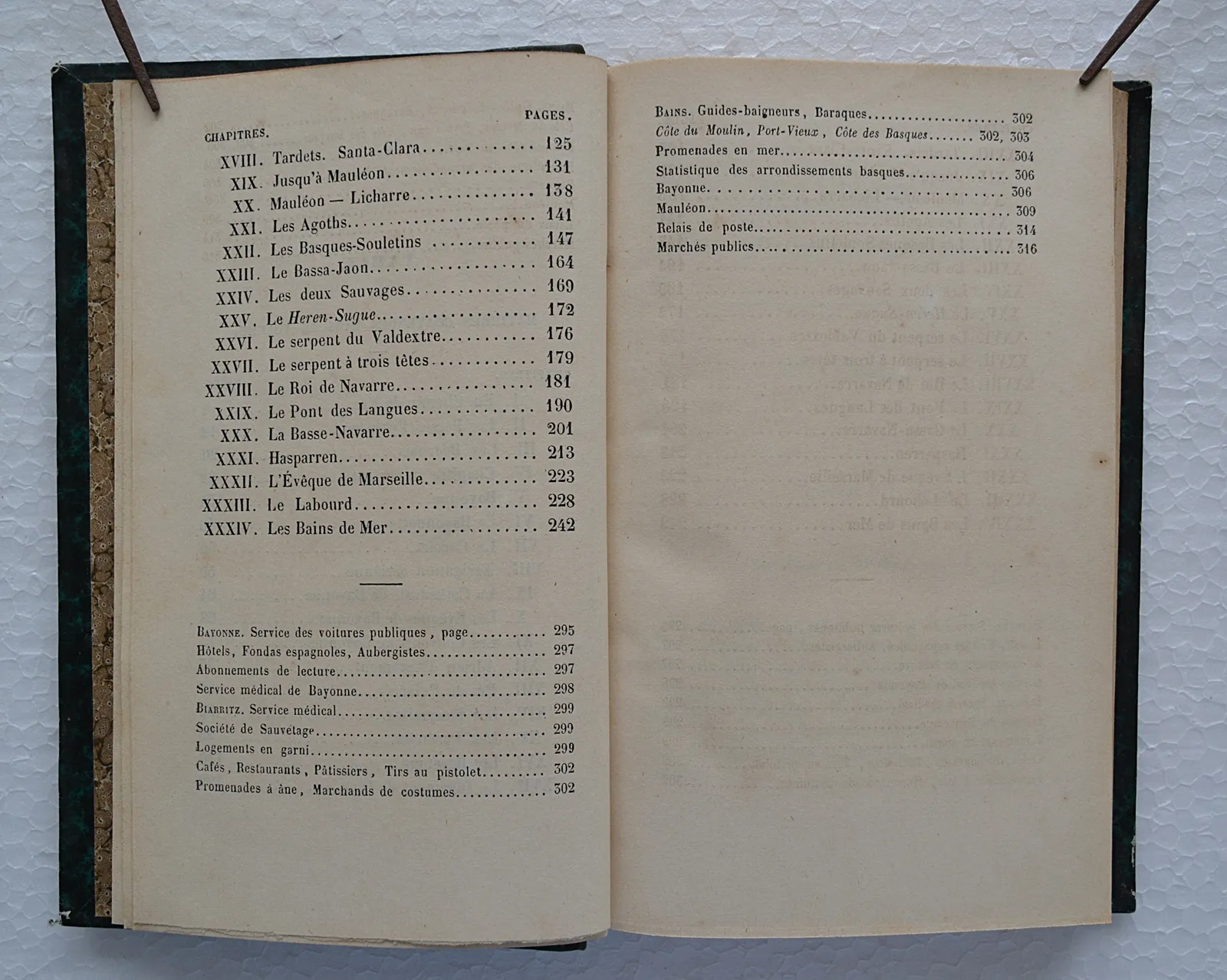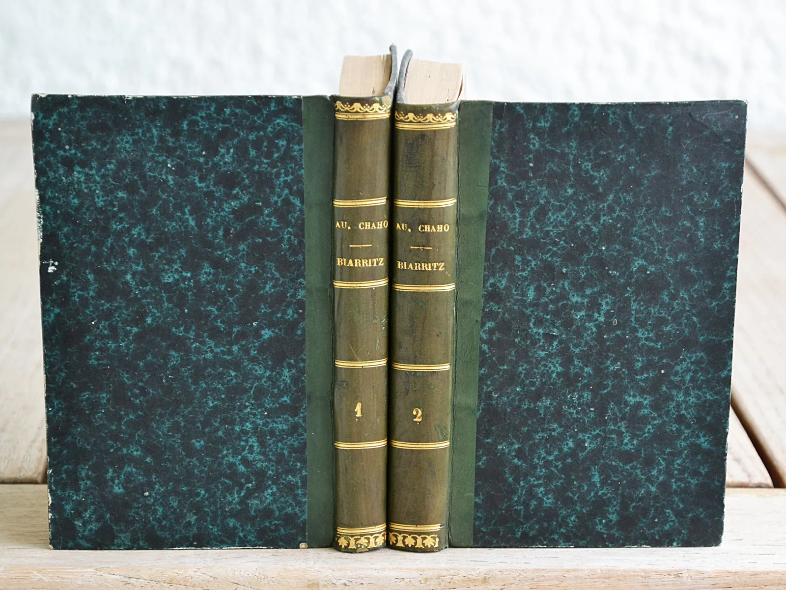Deux volumes en demi-basane verte, itinéraire pittoresque entre les Pyrénées et l'océan publié chez Andreossy à Bayonne vers 1850.