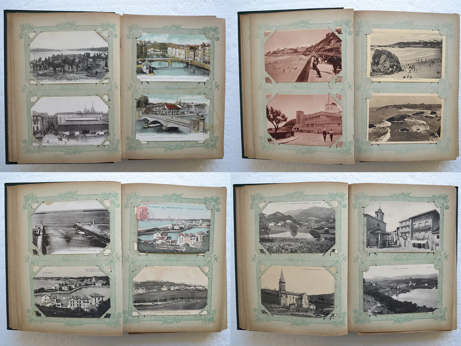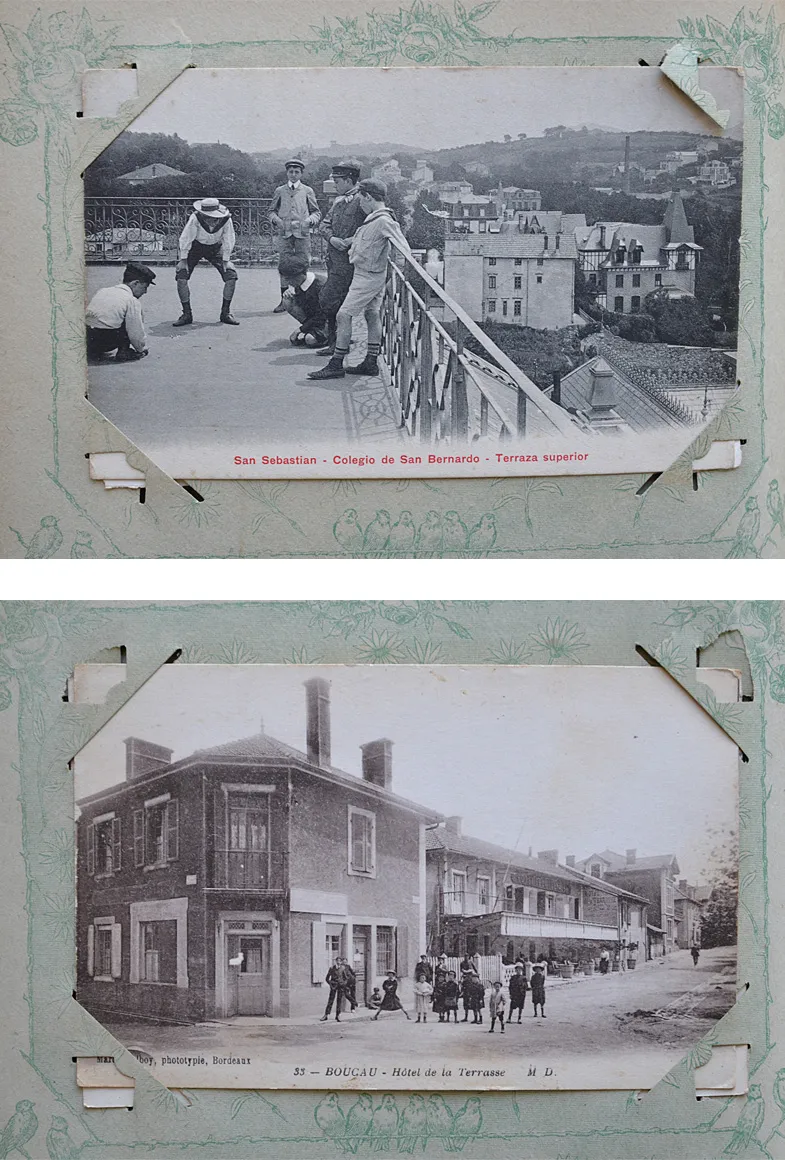 108 cartes postales de villes, de villages et de paysages divers du Pays Basque, principalement de Biarritz et de Bayonne et divers [Guéthary (4) – Bidart – Saint-Jean-de-Luz (6) – Cambo – Bidarray – Béhobie – Lezo (2) – San Sébastien (12) – Urun (2) – Fontarabie (4) – Hendaye – Iriartea – Arbonne (4) – Urcuit (3) – Boucau, etc.] + 5 cartes diverses (Landes / Morlaas / Cauterets).