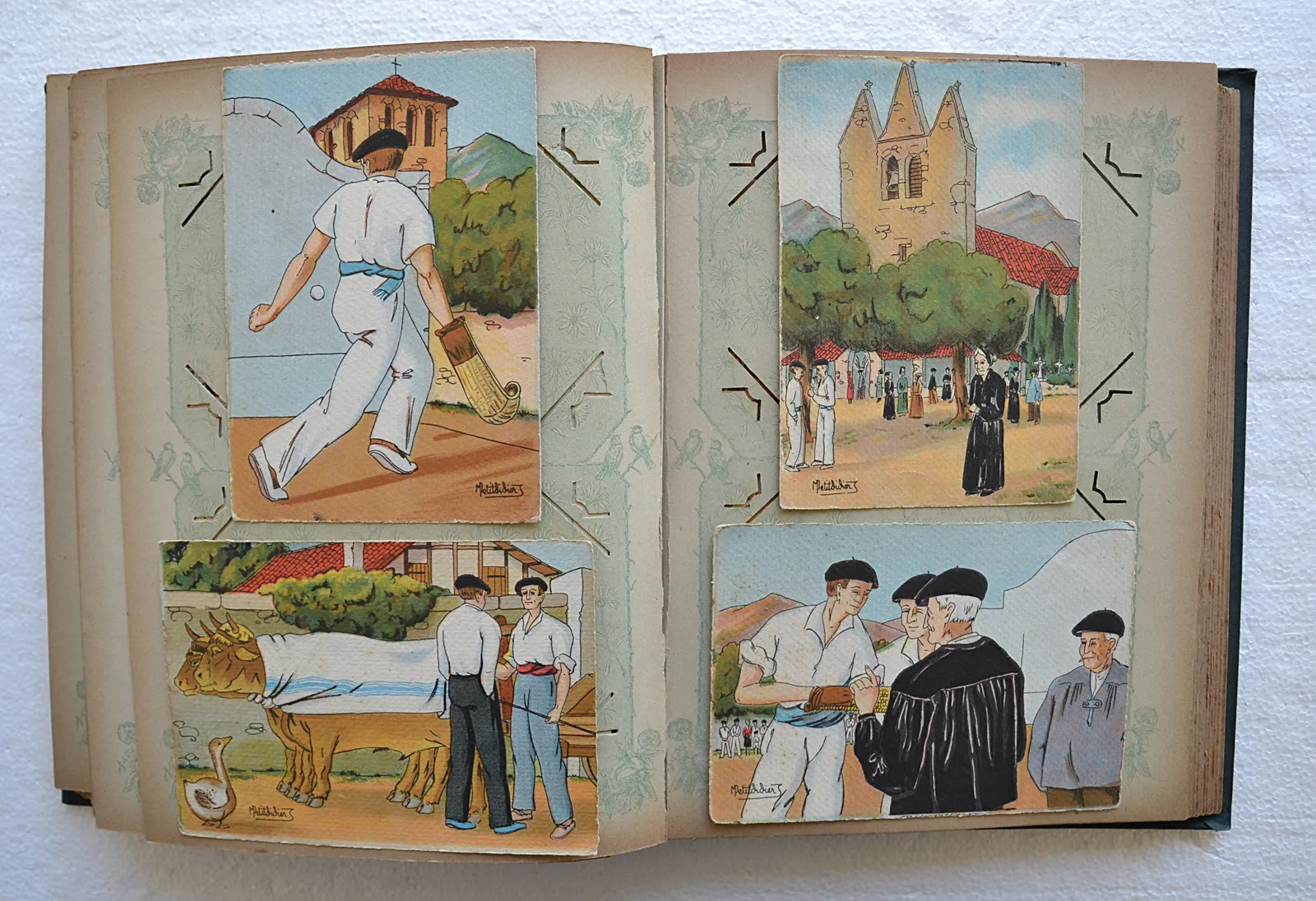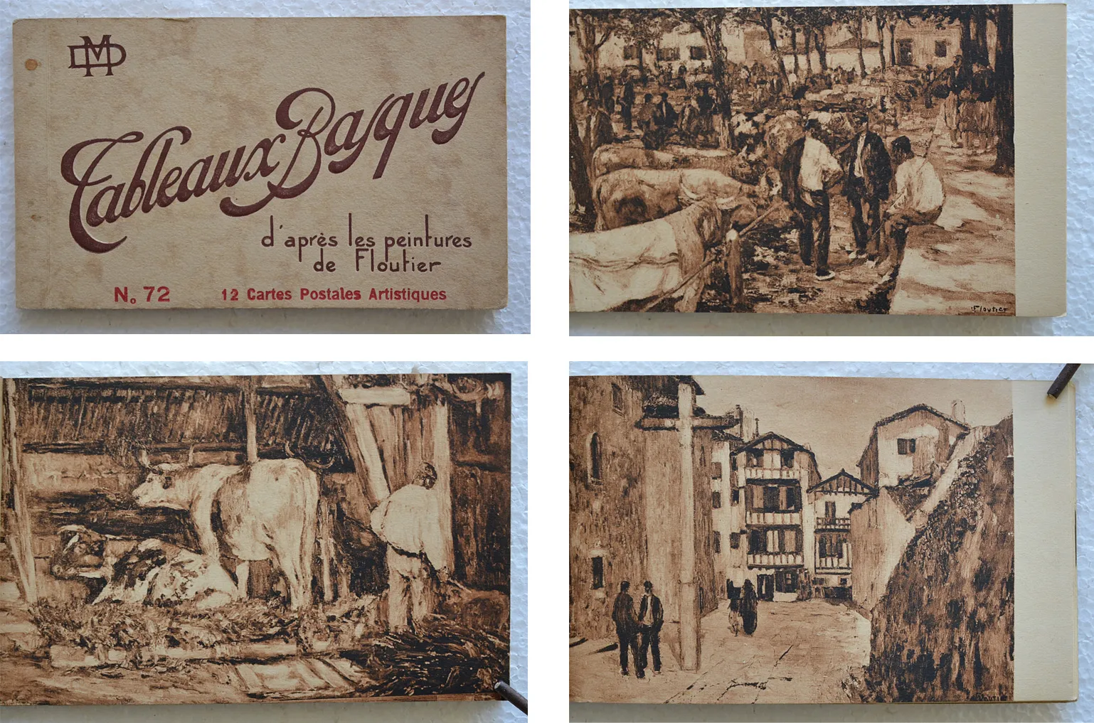 Un carnet de 12 cartes postales de tableaux Basques, d’après les peintures de Floutier.