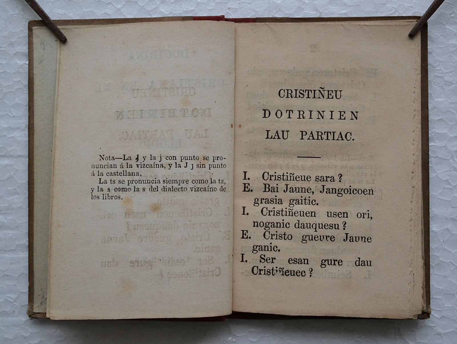 Rarissime impression londonienne de ce texte basque, tiré seulement à 50 exemplaires dans la maison du Prince Louis-Lucien Bonaparte.