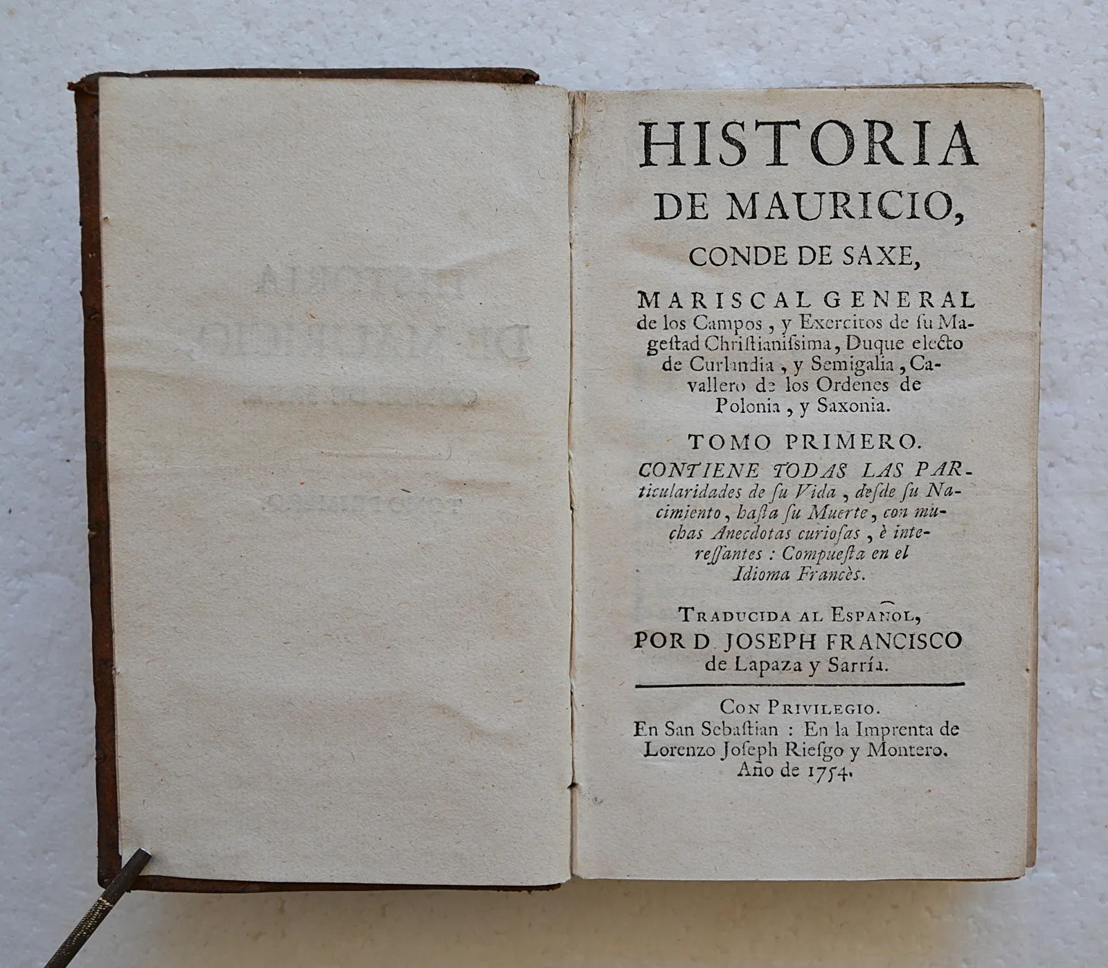 Historia de Mauricio, Conde de Saxe (…). Contiene todas las particularidades de su vida, desde su nacimiento, basta su muerte, con muchas anecdotas curiosas, è interessantes : compuesta en la idioma Francès. Traducida al Español, por D. Joseph Francisco de Lapaza y Sarria.