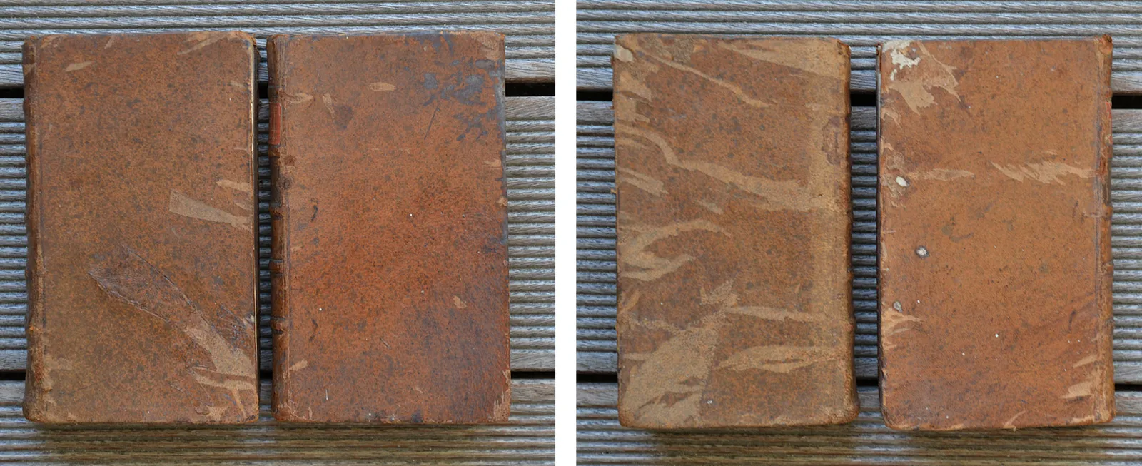 Deux volumes in-12 (9 x 16 cm.) de (10ff.) – XIV – (1f.) – 470 pp. + 416 pp. ; basane fauve mouchetée, dos à nerfs (reliure de l’époque).