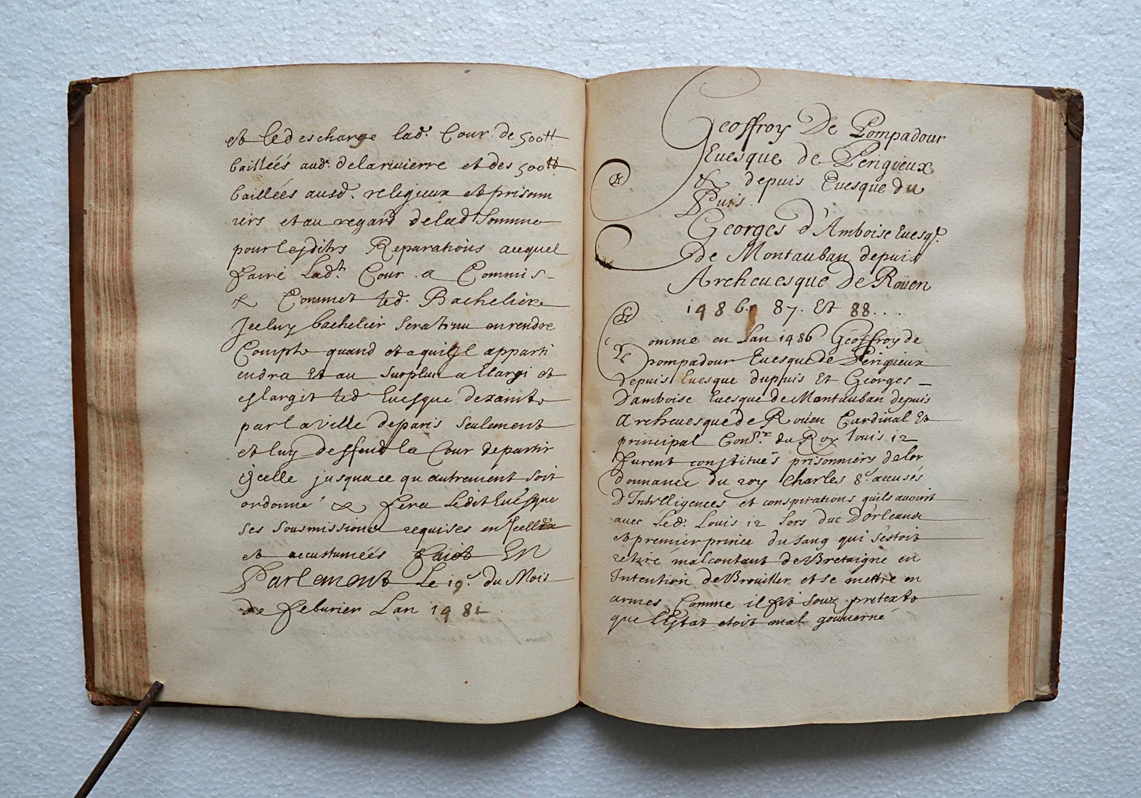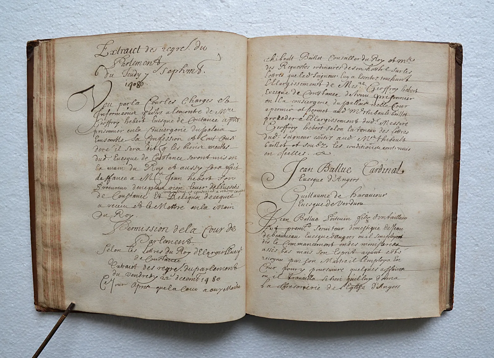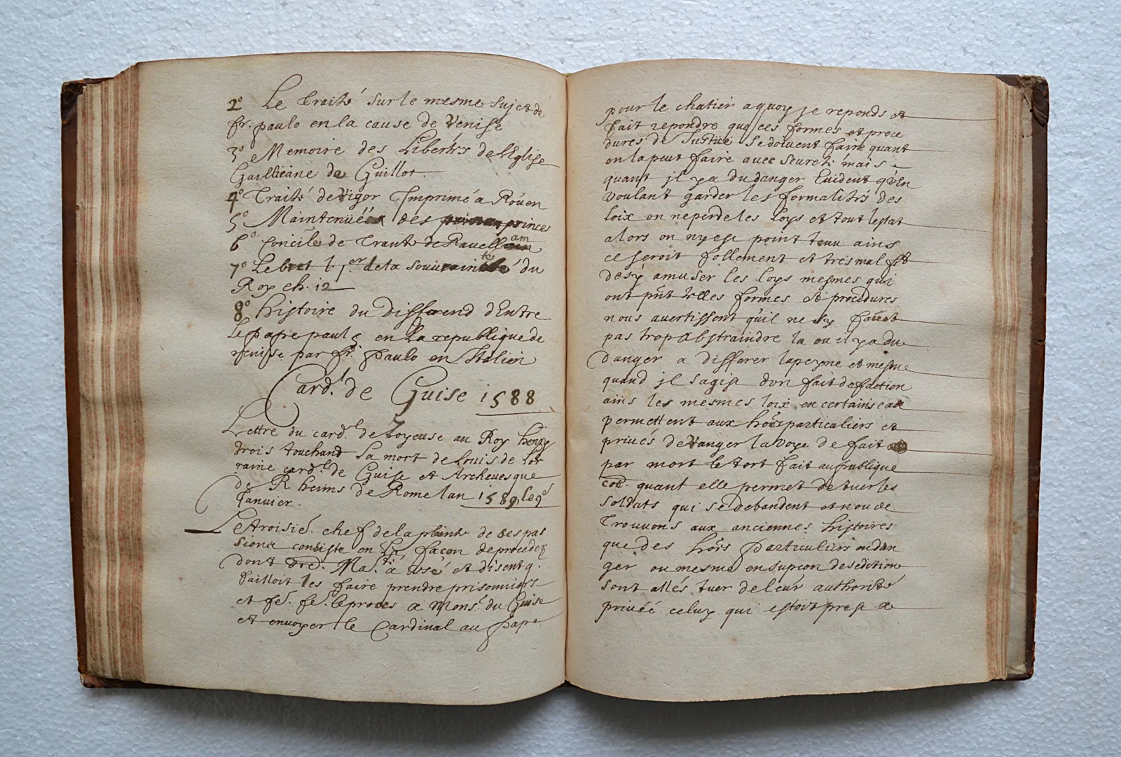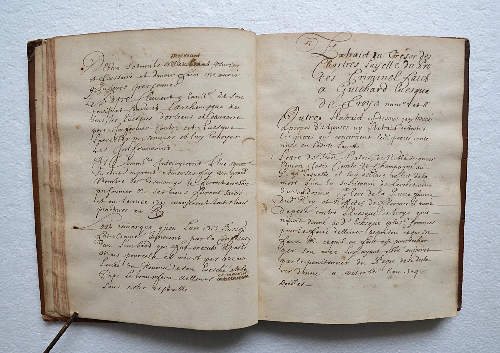 Important manuscrit anonyme du XVIIe siècle, recueil de procédures criminelles célèbres contre des ecclésiastiques accusés de crime de lèse-majesté, des évêques aux cardinaux.