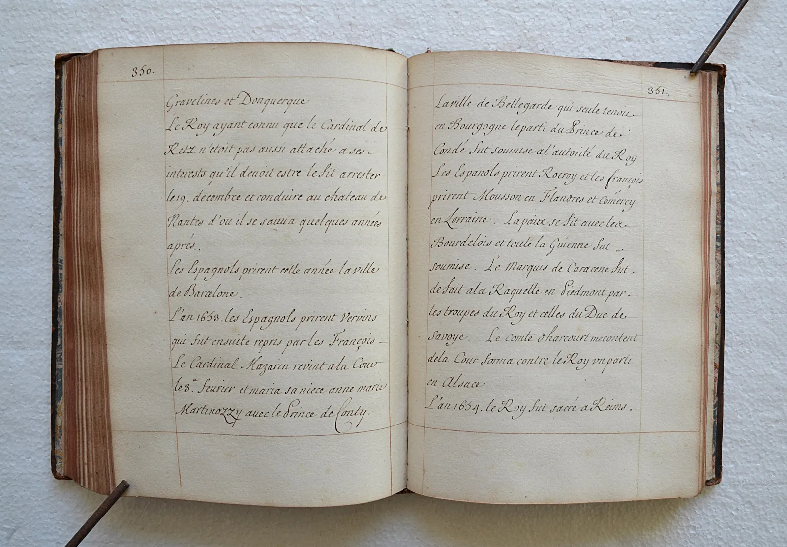 Très beau manuscrit réglé de la fin du XVIIe siècle, couvrant l'Histoire de France depuis Pharamond en 418 jusqu'au règne de Louis XIV, en 401 pages d'une belle écriture lisible.