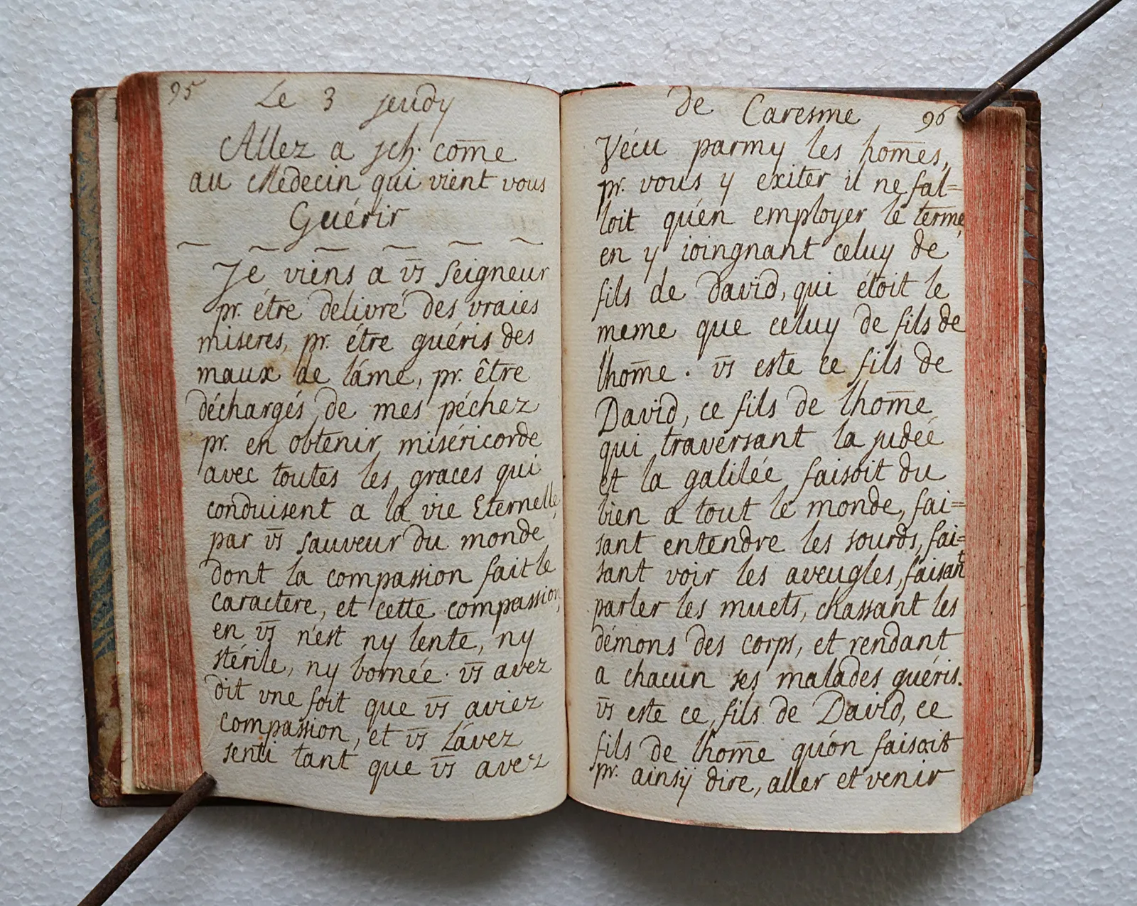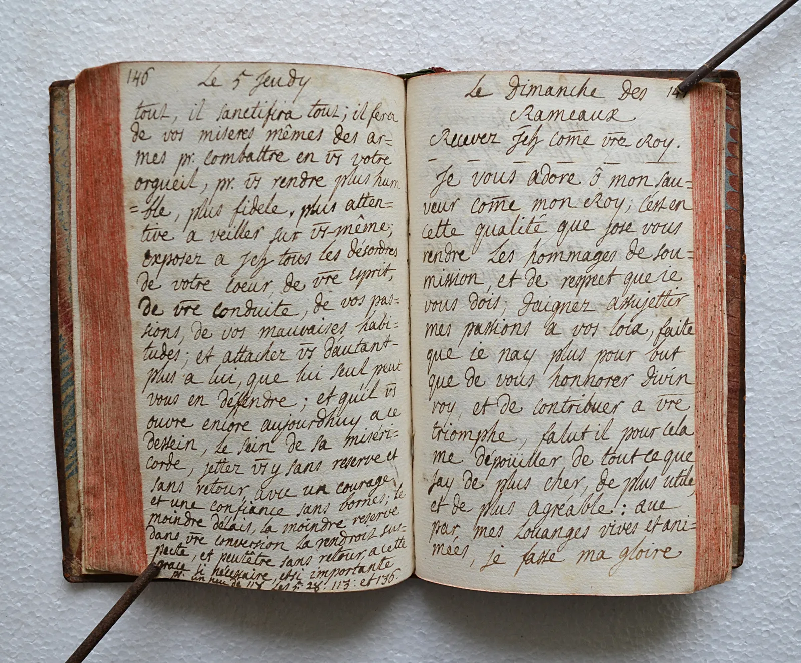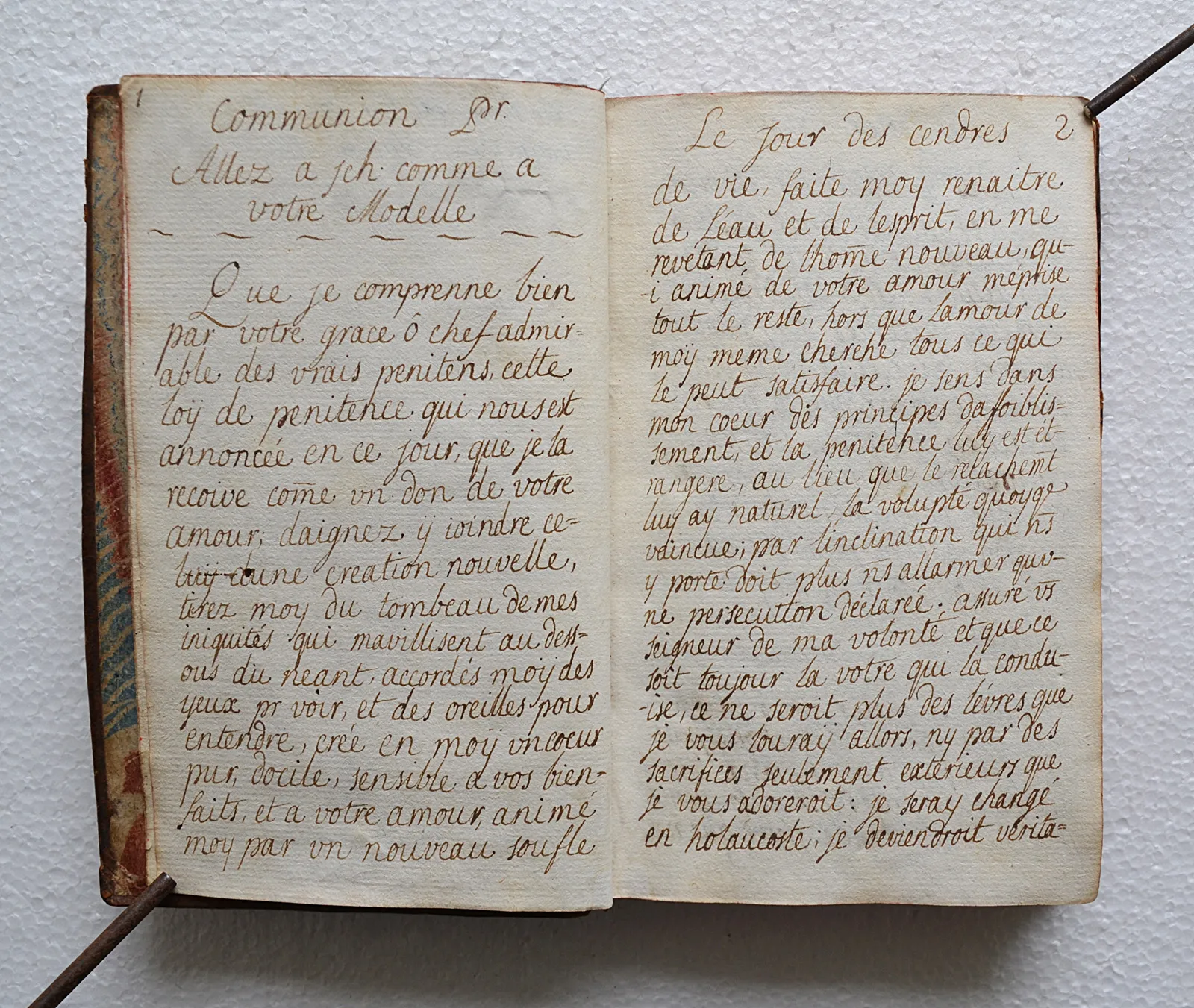 Manuscrit de prières pour le Carême et la Semaine Sainte, dédié à Soeur Marianne Sophie de Rottembourg, en basane fauve d'époque, achevé à Nancy en 1739.