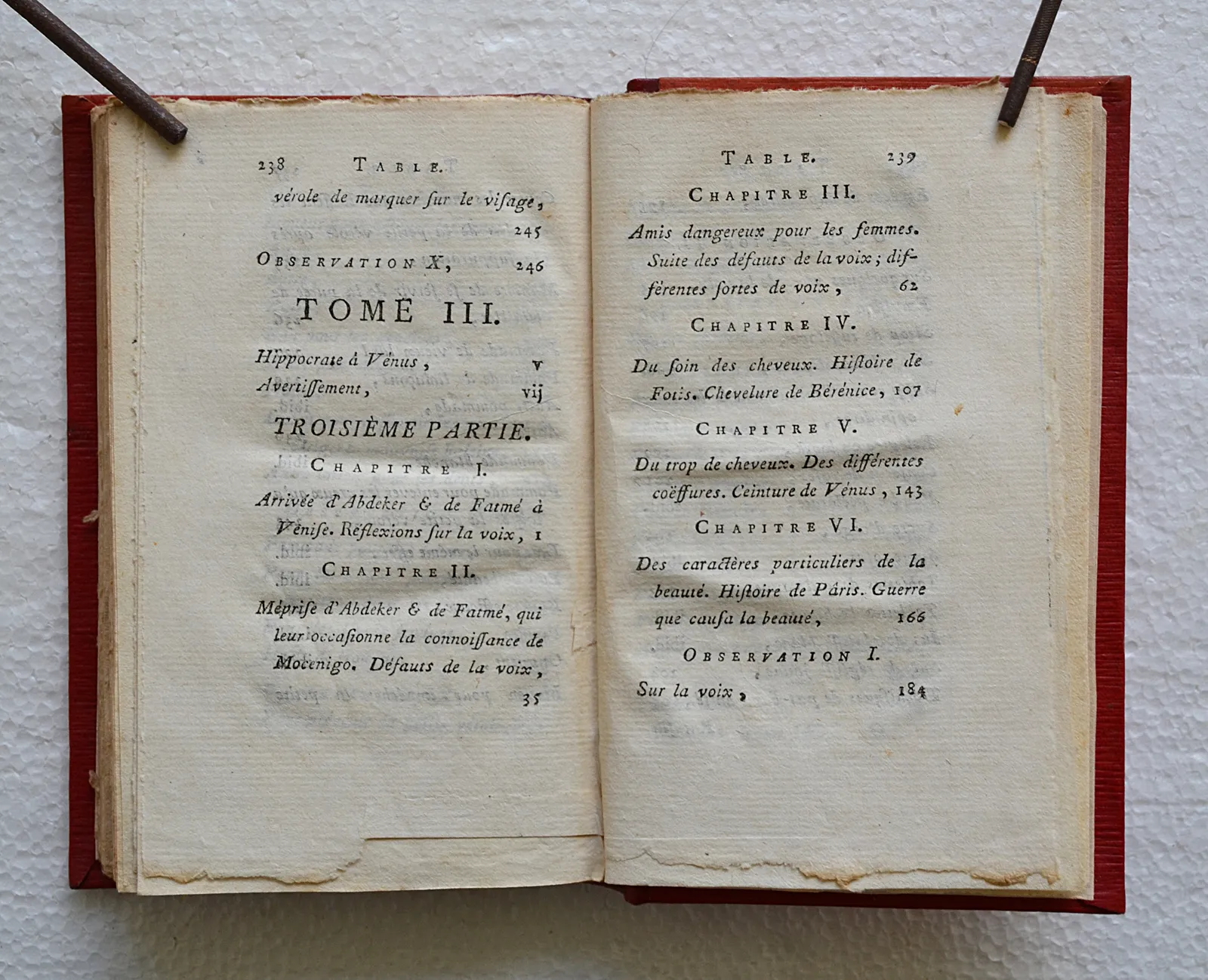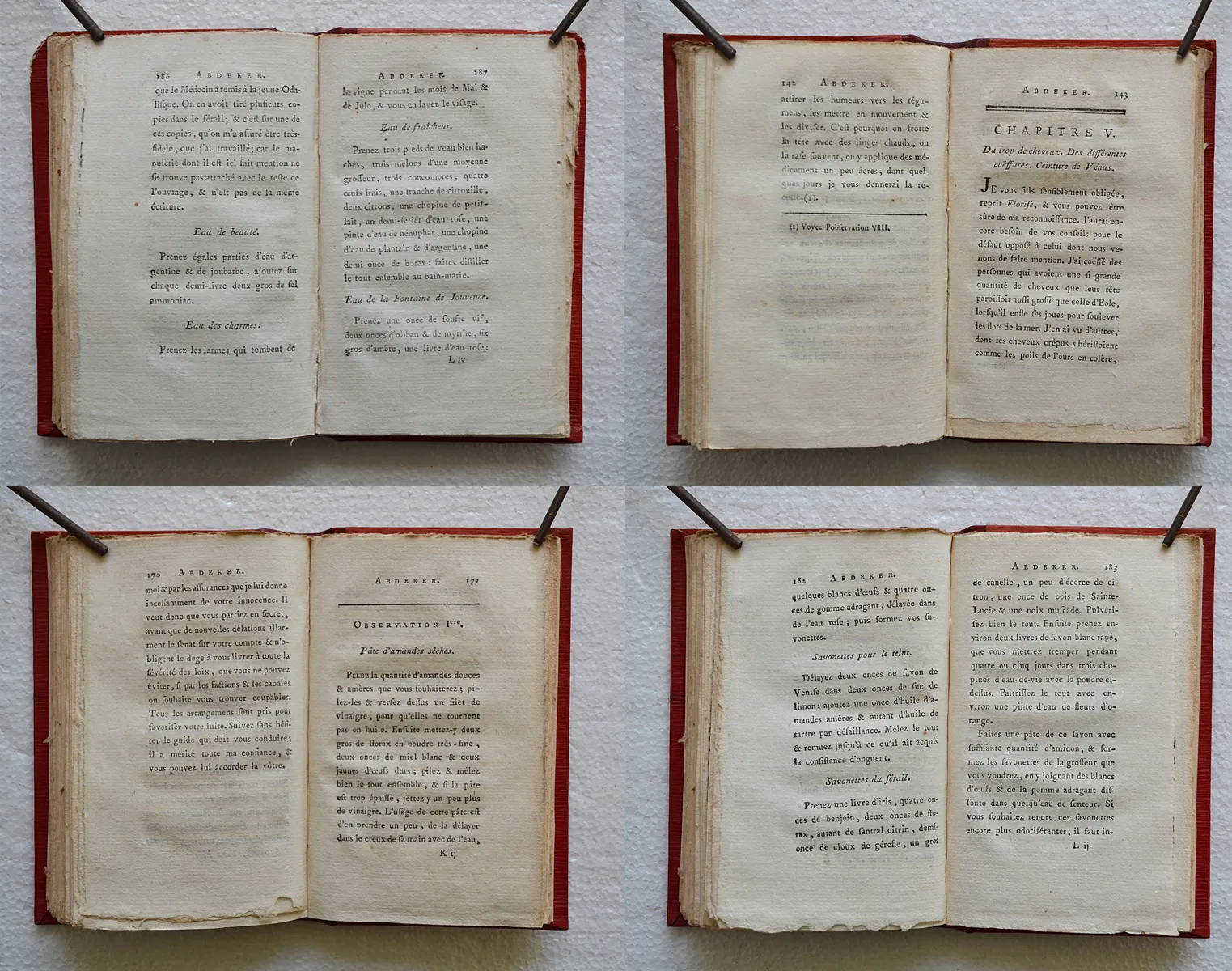 Quatre volumes en demi-maroquin rouge à grain long d'époque, réunissant un singulier alliage de roman, de manuel médical et de traité de cosmétique. Très rare dans cette condition.