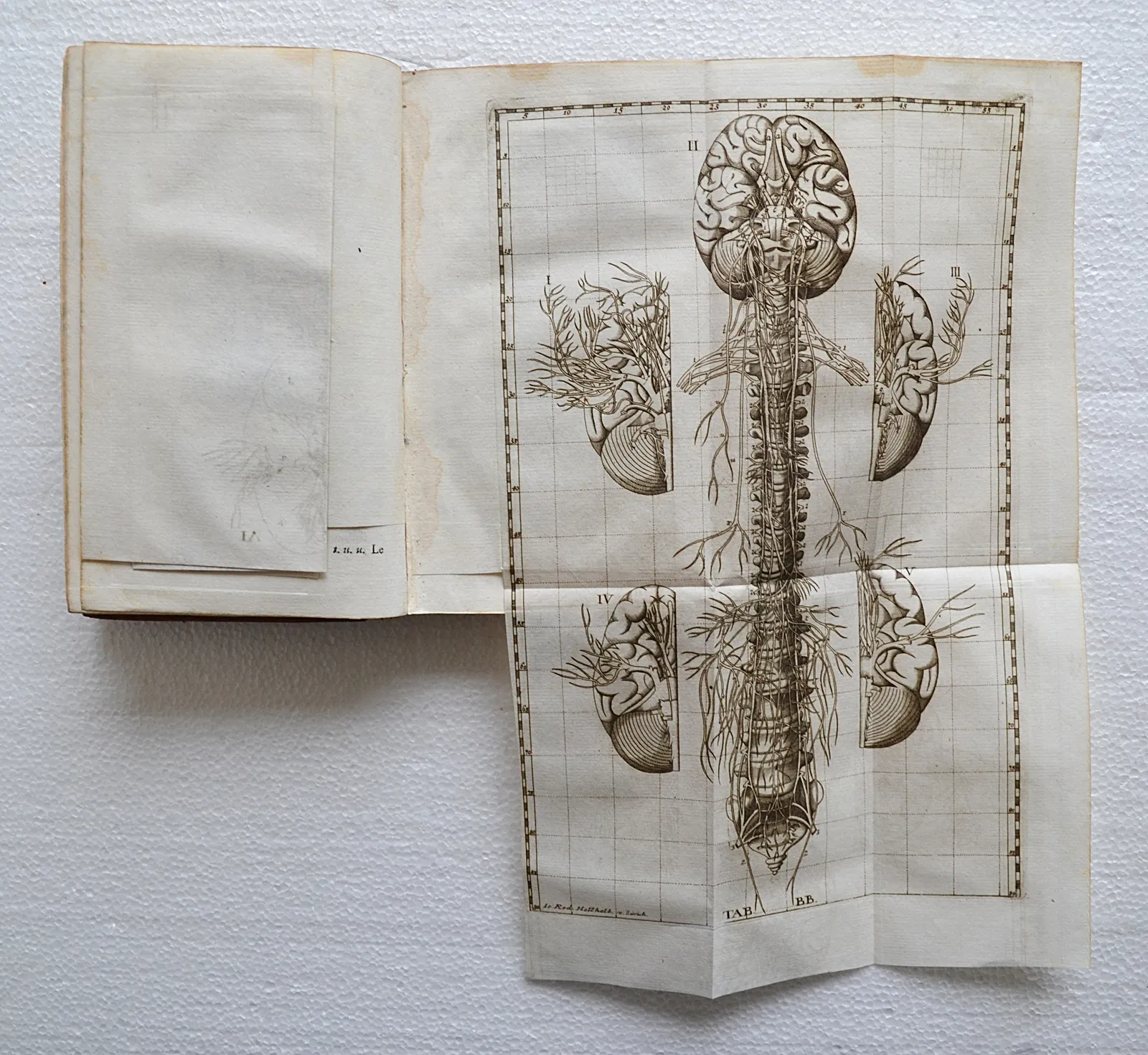 Très bel exemplaire de cet ouvrage de référence du XVIII° siècle pour l’anatomie descriptive, illustré d’une vignette sur les titres, et de 9 planches d’anatomie, dessinées par Johann Rudolph Holzhalb (la seconde planche compte pour deux : figures A1 & A2 rassemblées en une seule planche).