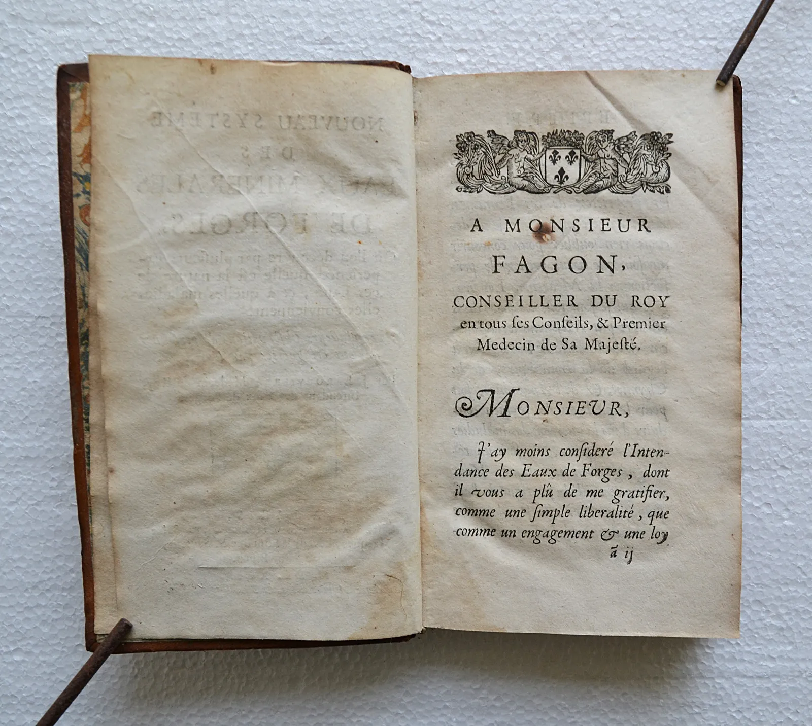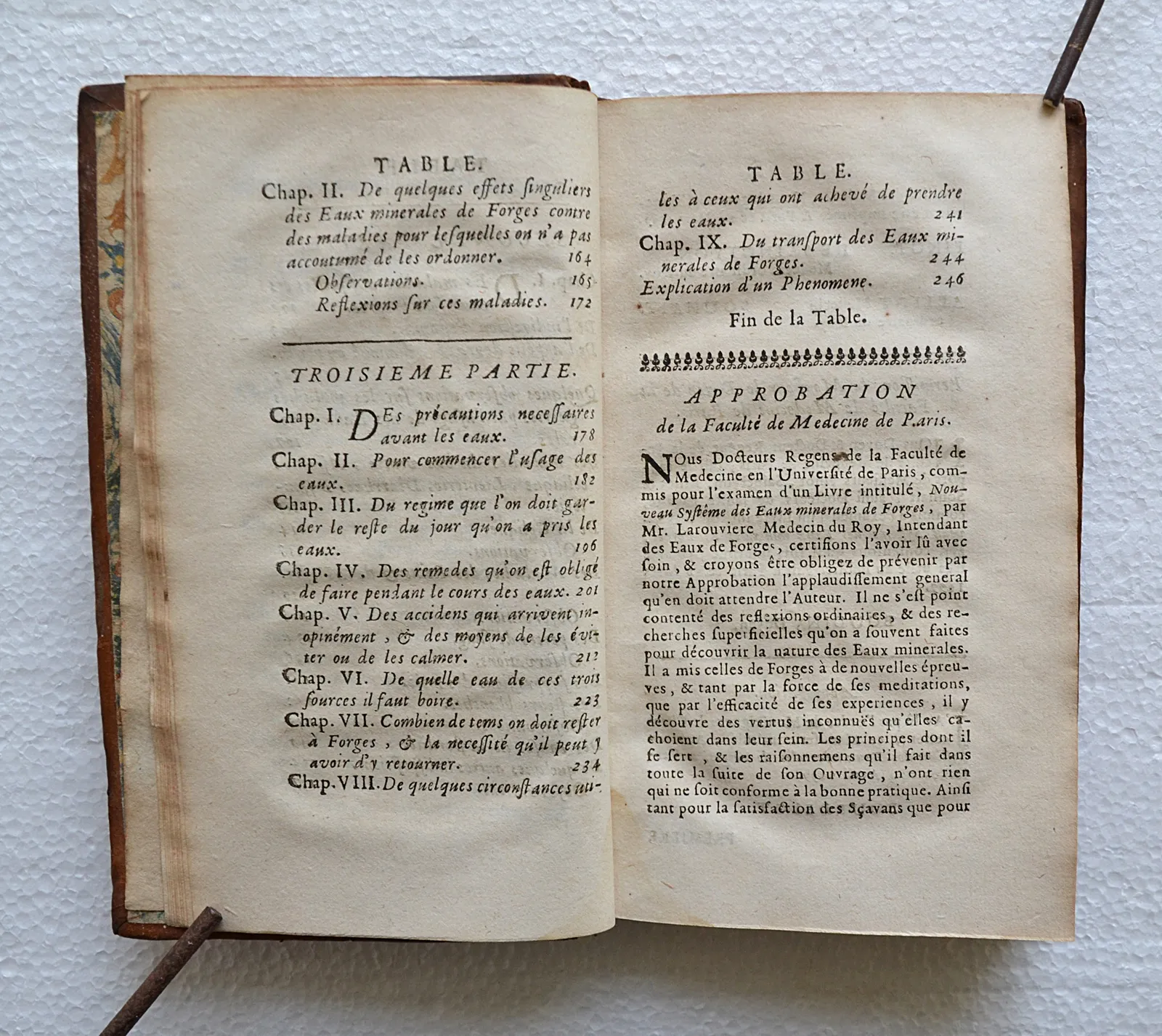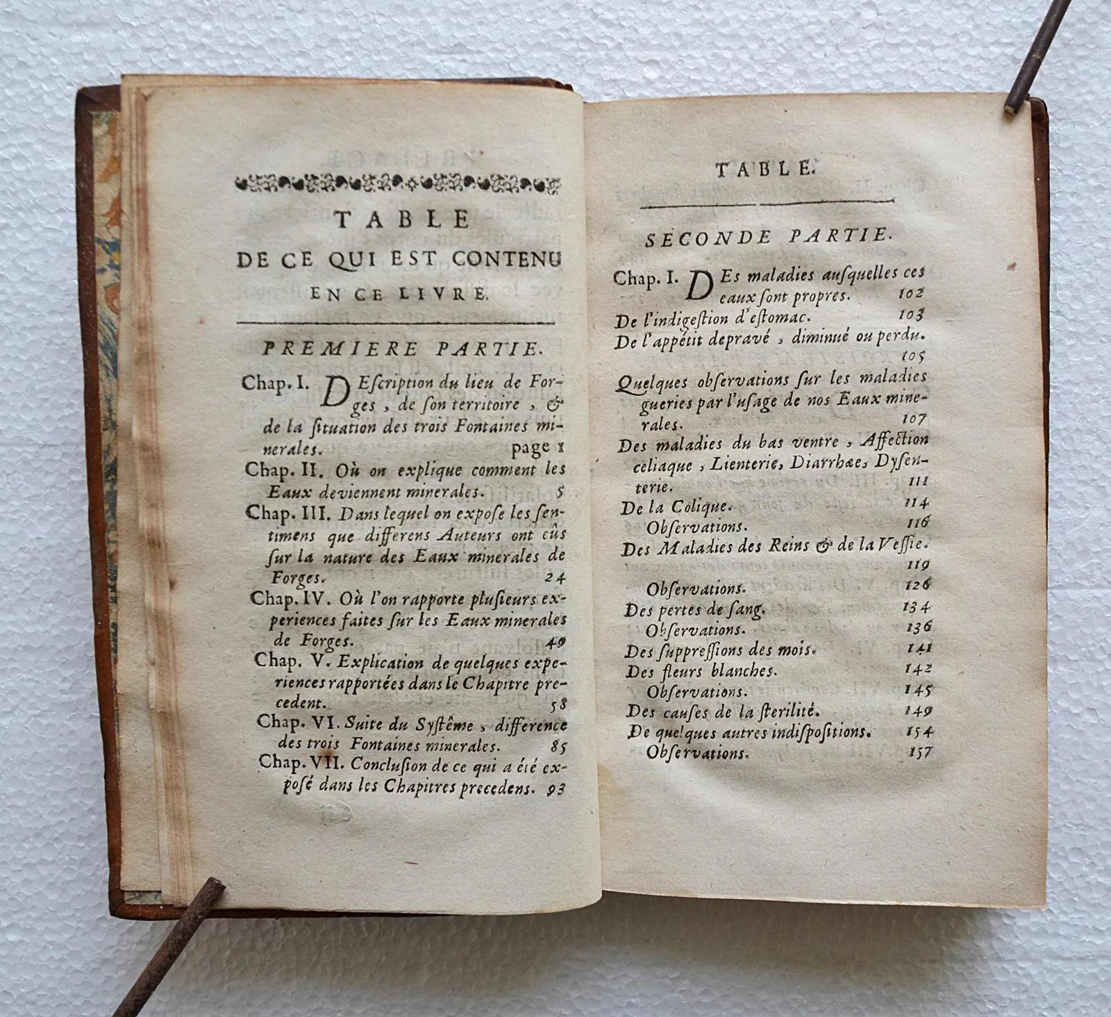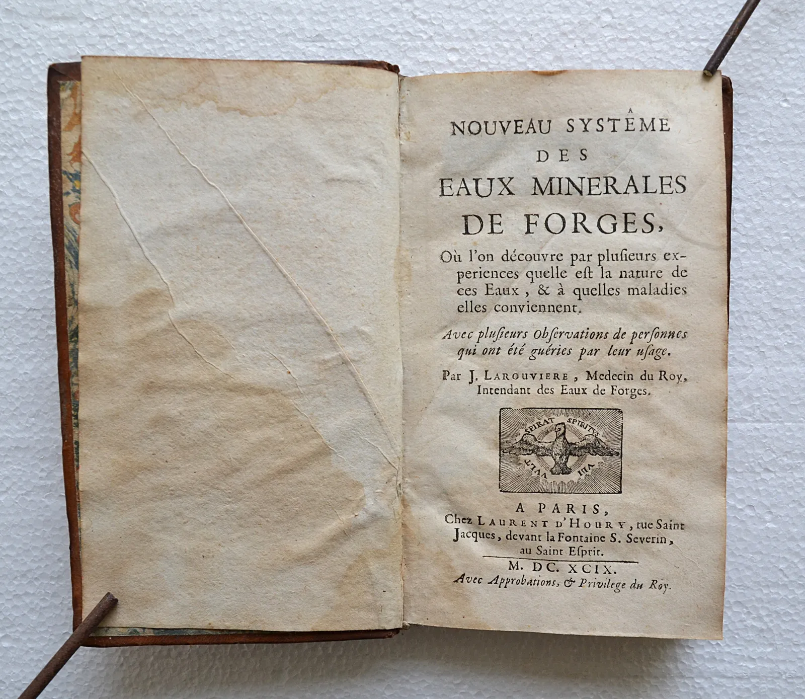 Édition originale de 1699 sur les eaux de Forges-les-Eaux, réputées pour guérir l'anémie et la stérilité, fréquentées par Louis XIII et Anne d'Autriche. Trois planches.