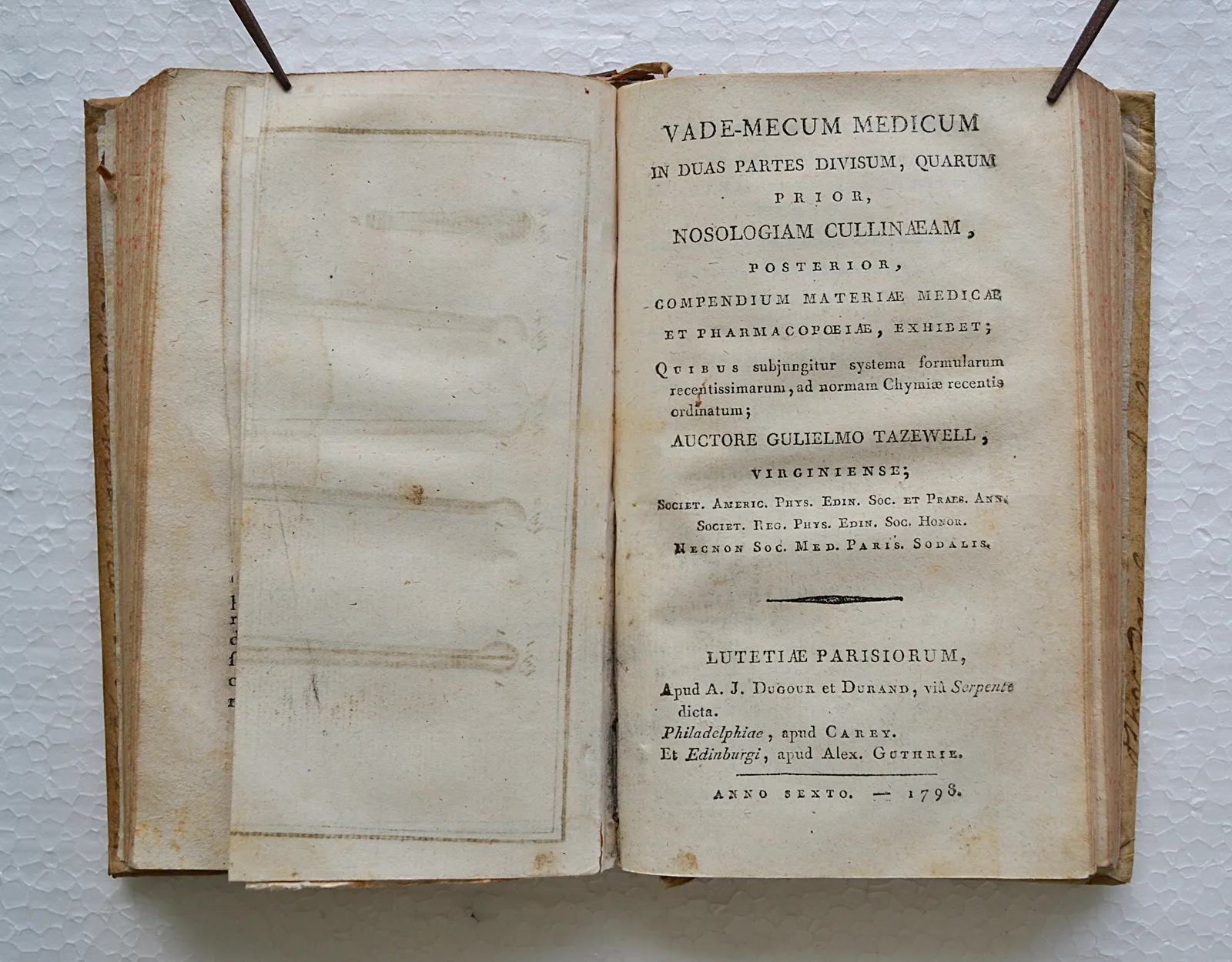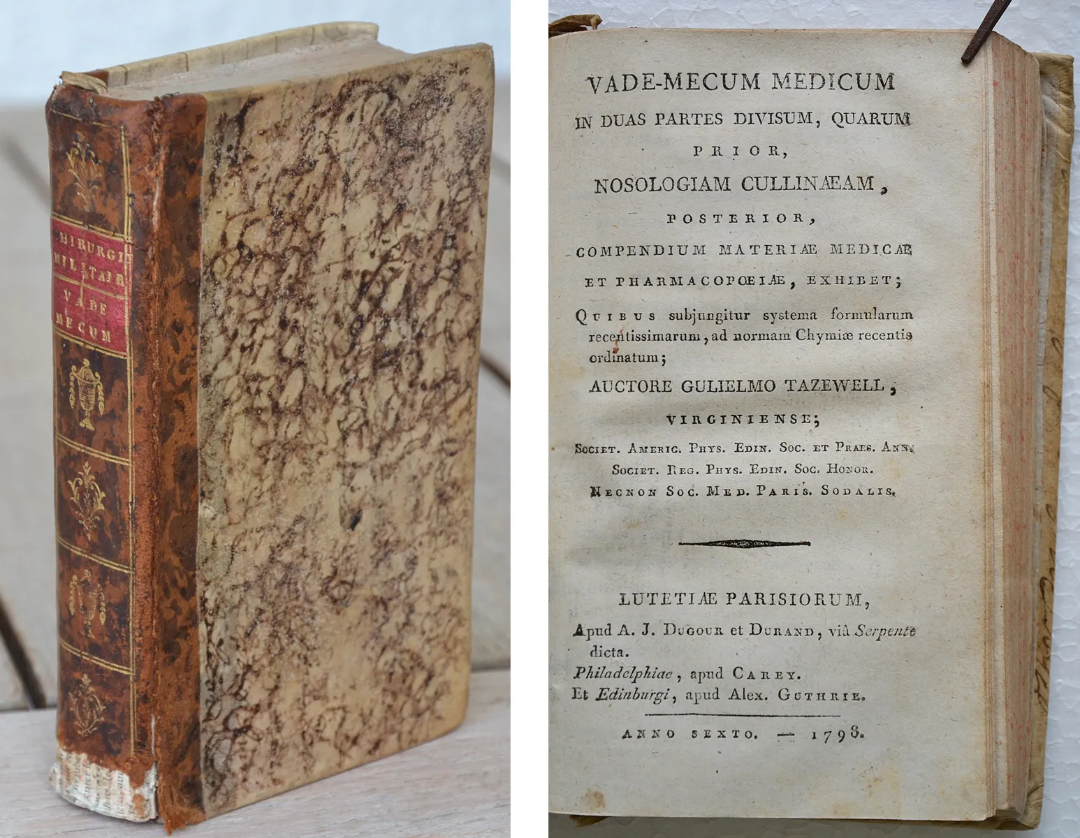 Vade-mecum medicum in duas partes divisum, quarum prior, nosologiam cullinaeam, posterior, compendium materiae medicae et pharmacopoeiae, exhibit ; quibus subungitur systema formularum recentissimarum, ad normam chymiae recentia ordinatum. Auctore Guilielmo Tazewell, virginiense.