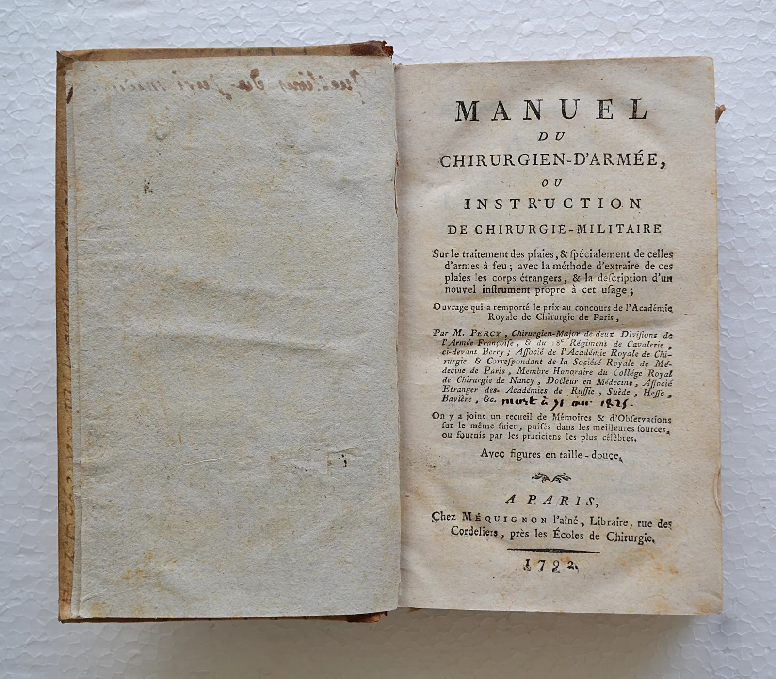 Manuel du chirurgien-d ’armée, ou instruction de chirurgie-militaire sur le traitement des plaies, & spécialement celles d’armes à feu ; avec la méthode d’extraire de ces plaies les corps étrangers, & la description d’un nouvel instrument propre à cet usage (…) Ouvrage qui a remporté le prix au concours de l’Académie Royale de Chirurgie à Paris.