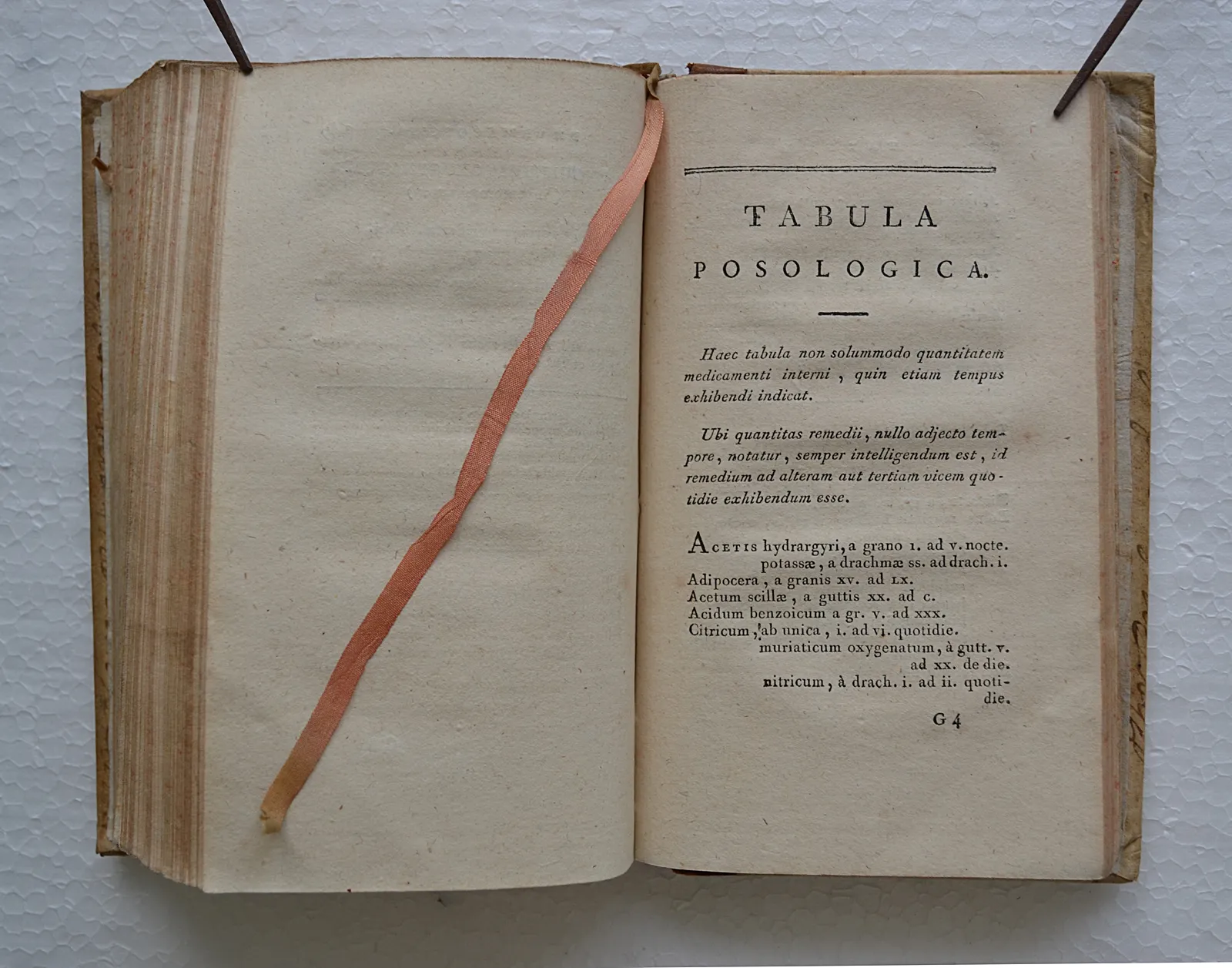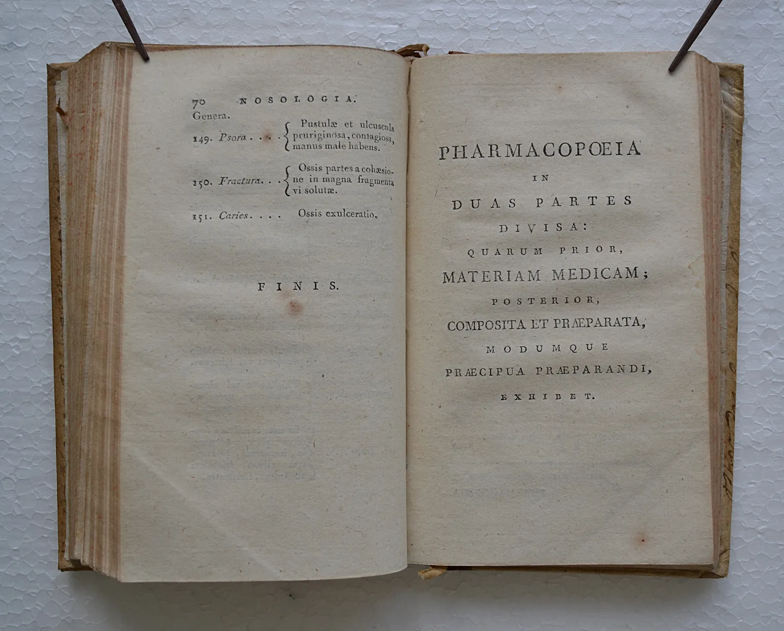 Le corps du livre se divise en deux parties. Dans la première, intitulée Nosologia (pp. 1–70), toutes les maladies sont divisées en classes, ordines, genres et espèces selon le Synopsis nosologiae medicae (1785) du médecin écossais William Cullen, et chaque maladie est brièvement définie en termes de symptômes (par exemple, chlorose 30 : dyspepsie, vel rei non esculentae desiderium ; pâleur cutanée vel decoloratio ; venae minus plenae, corporis tumor mollis ; asthénie ; palpitatio ; menstruorum retentiono ). La deuxième partie, la Pharmacopée (pp. 71–200), commence par deux listes alphabétiques de médicaments végétaux simples, dont les désignations médicales et les noms botaniques (ou zoologiques) sont donnés sur deux colonnes, et de médicaments chimiques, dont les noms français et anglais sont également donnés (pp. 73–106). Viennent ensuite les médicaments composés et leurs formules (pp. 107–149). Une Tabula posologica (pp. 152–163) renseigne sur la posologie de chaque médicament. Dans une dernière sous-section, les médicaments (toujours avec formules) sont classés selon leurs effets (pp. 165–200). L’ouvrage se conclut par un Contentorum index etimologicus, une table des matières dont les « étymologies » ne sont pas, pour la plupart, des étymologies au sens moderne du terme, mais de simples explications de sens.