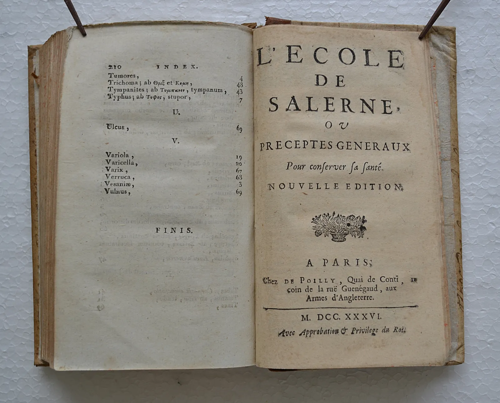 L’école de Salerne, ou préceptes généraux pour conserver sa santé. Nouvelle édition. Traduite & paraphrasée en vers François.