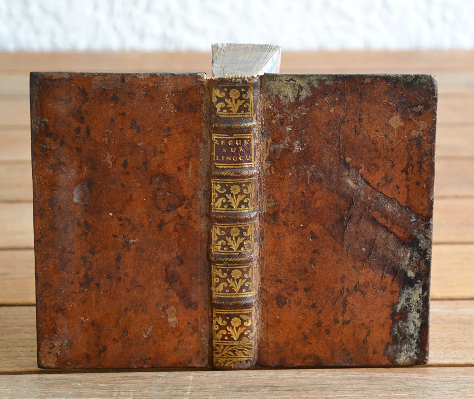 Un volume in-12 (10 x 16,8 cm.) de XI(1) – 335 pages ; basane fauve marbrée, dos à nerfs orné, pièces de titre en maroquin vieux rouge, tranches marbrées (reliure de l’époque).