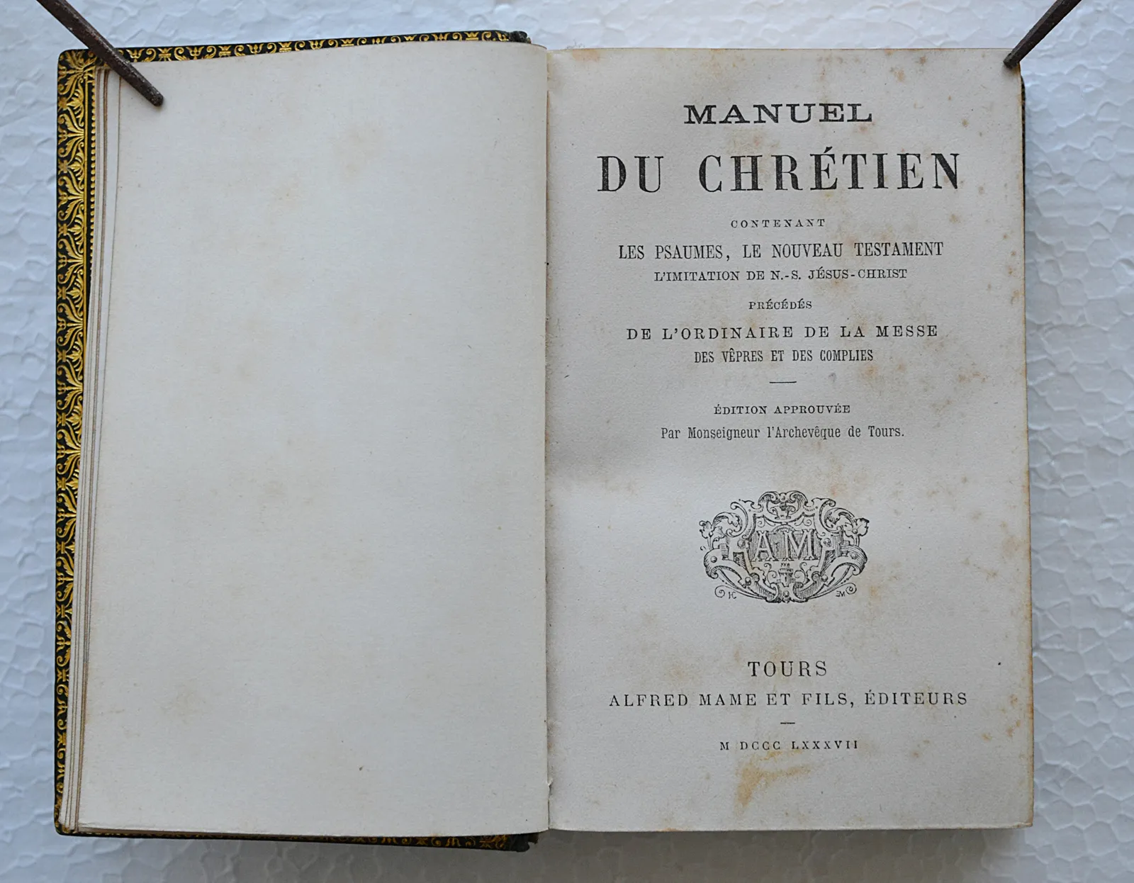Tours, Alfred Mame et fils, éditeurs, 1887. Un volume petit in-12 (8,5 x 12,5 cm.) de CXLVII – (1f.) – 535 pp. + 164 pp. ; maroquin vert émeraude janséniste, dos à nerfs, double filet doré sur les coupes, roulette dorée à l’intérieur, gardes illustrées, tranches dorées (rousseurs éparses).