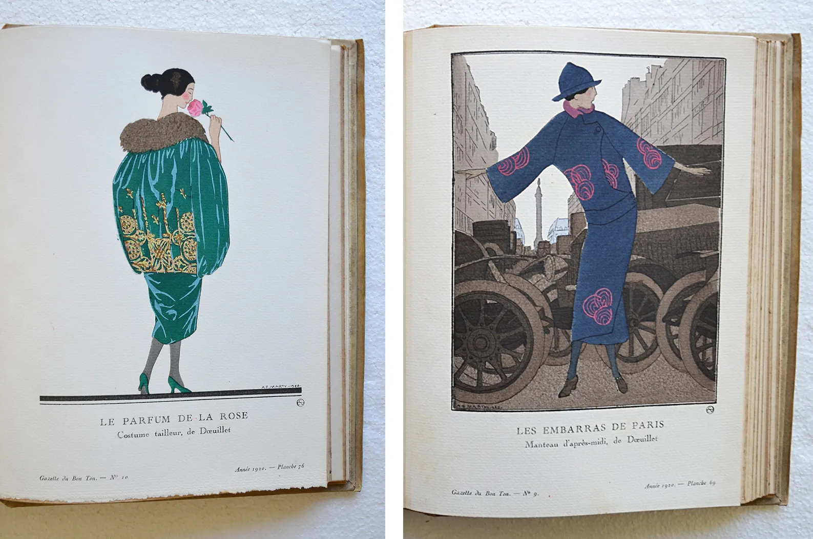Premier semestre 1920 de la première revue moderne de mode, 39 planches rehaussées au pochoir par Lepape, Brissaud et Bénito, avec des croquis de Raoul Dufy et Van Dongen.