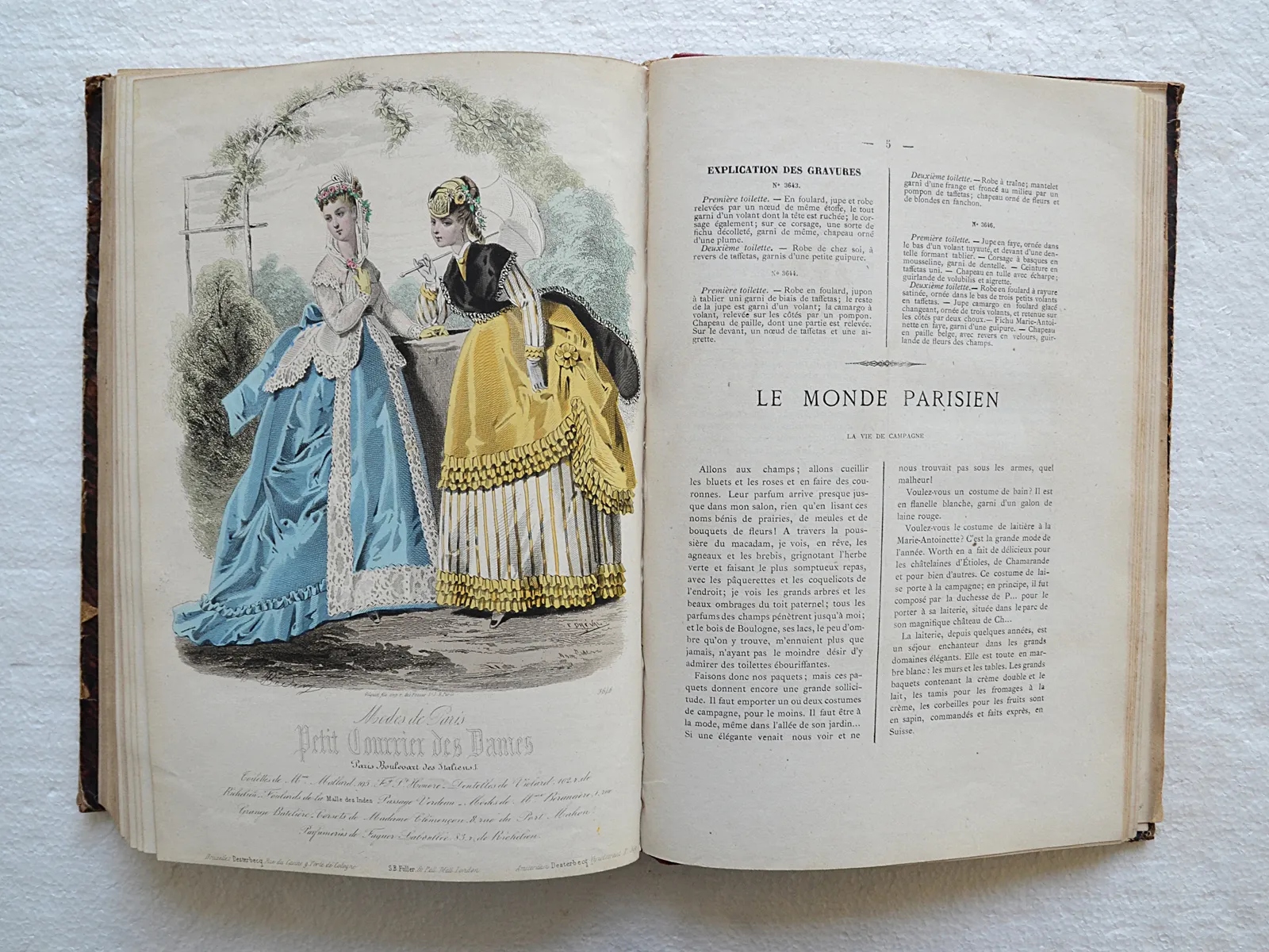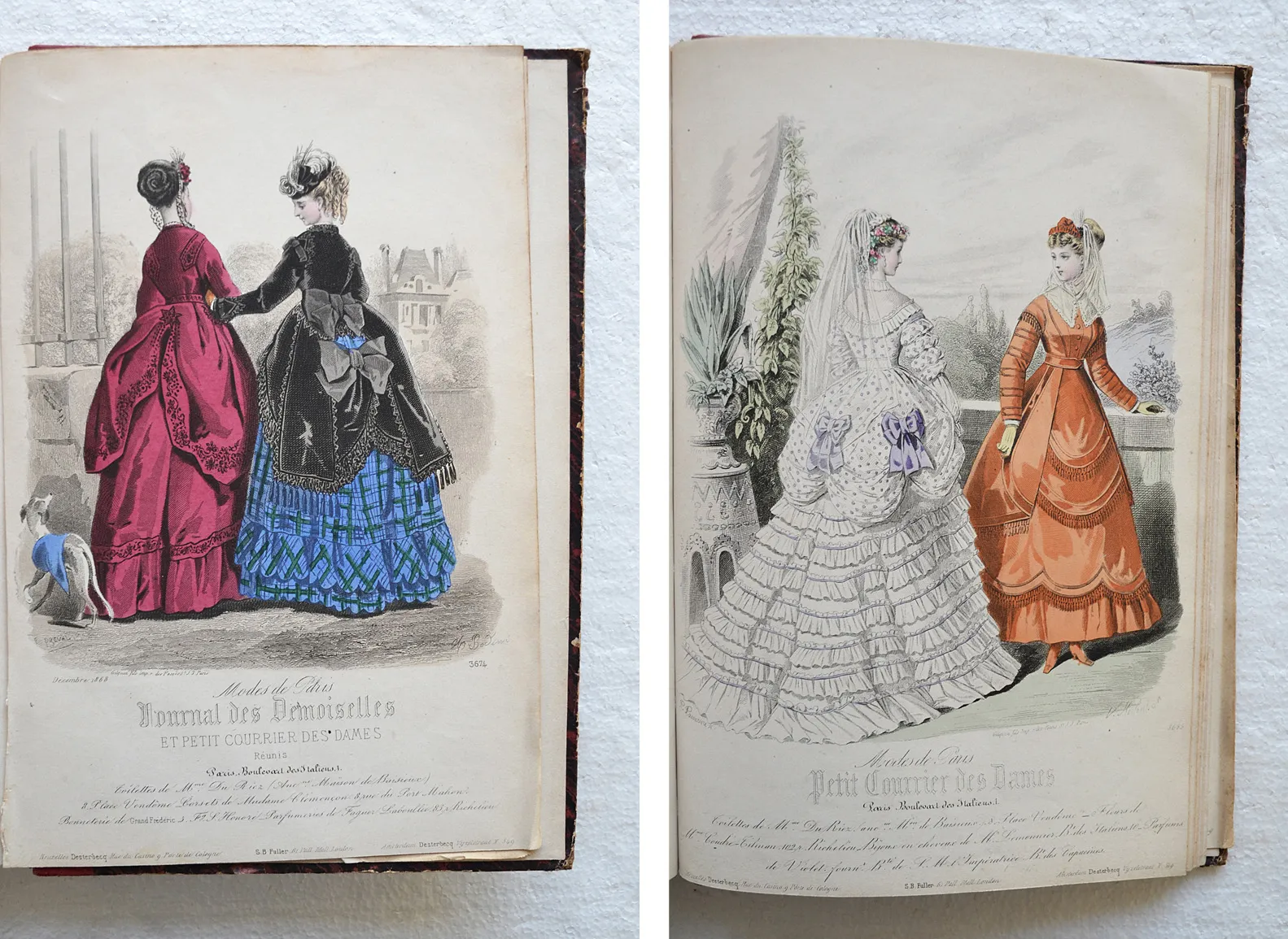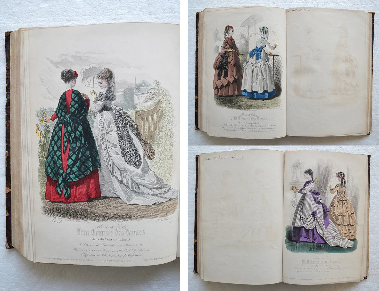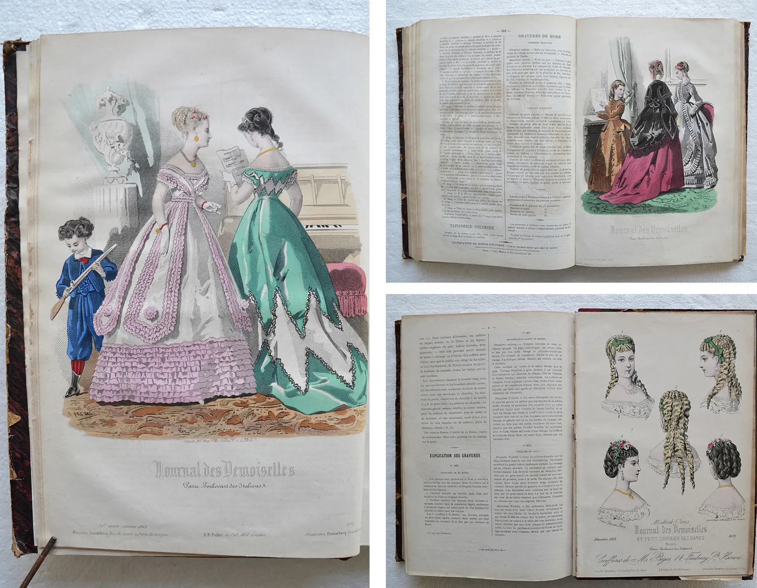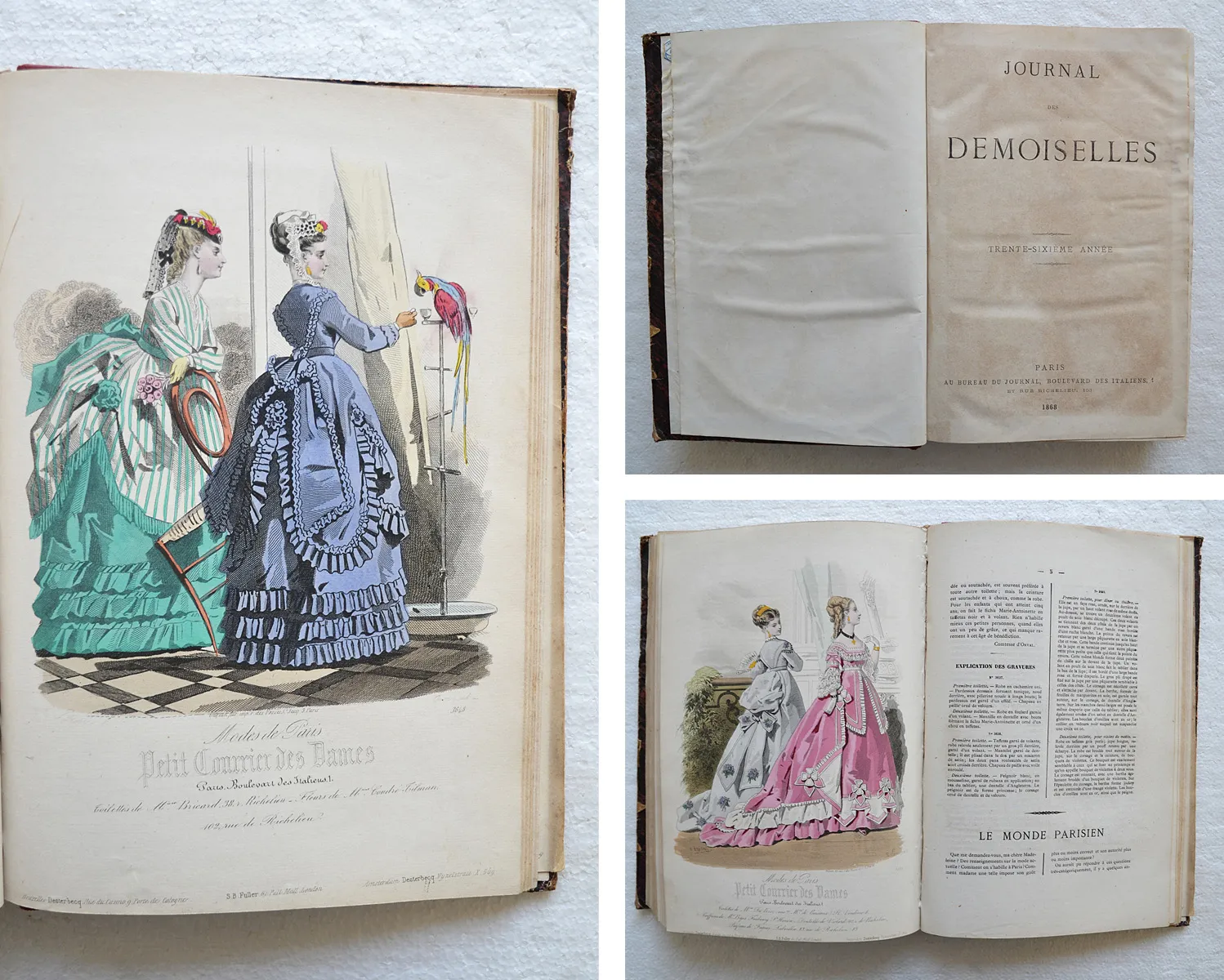 Année 1868 réunissant le Journal des Demoiselles et l'Écho du Petit Courrier des Dames en un seul volume, illustré de 50 planches gravées dont 46 coloriées.