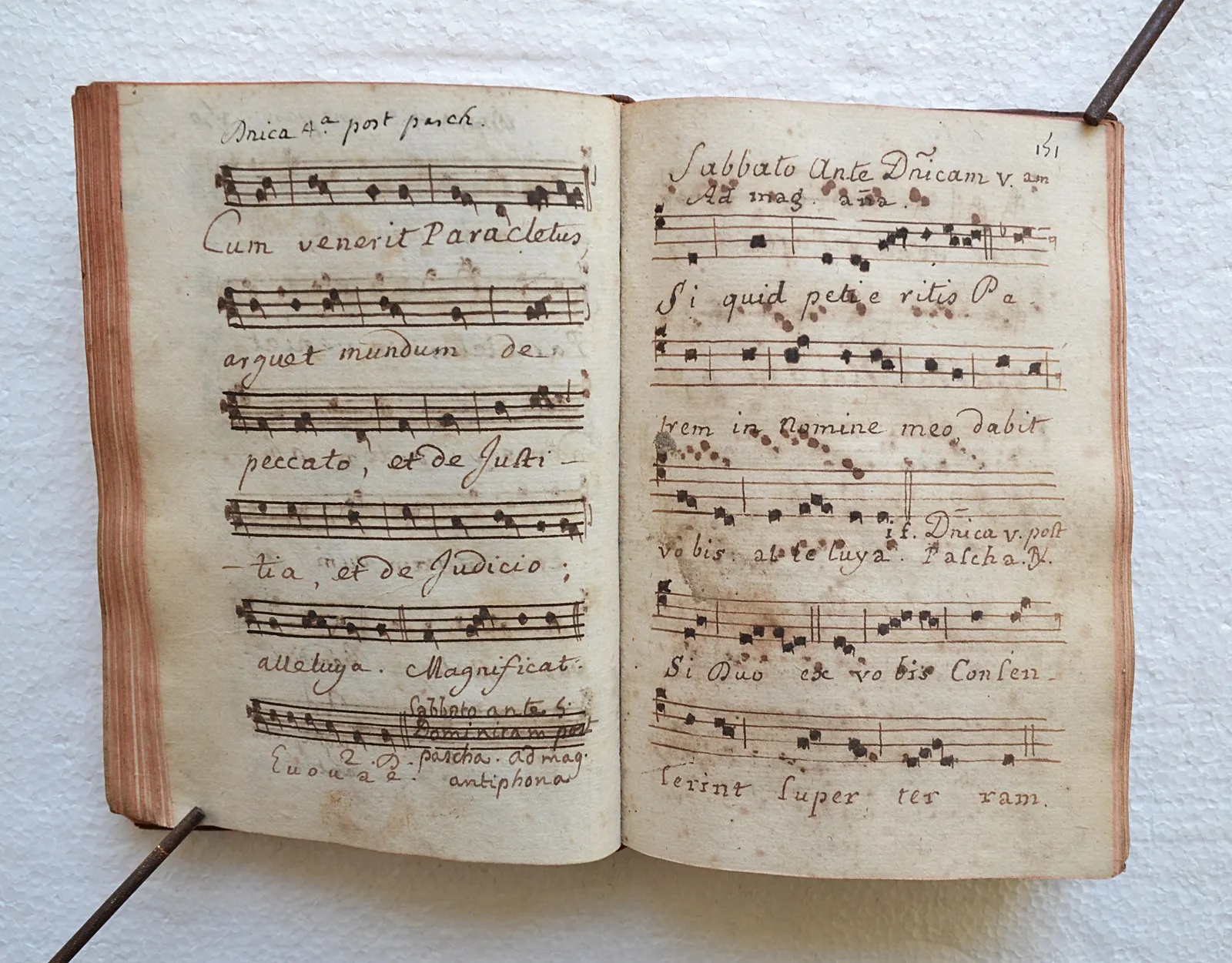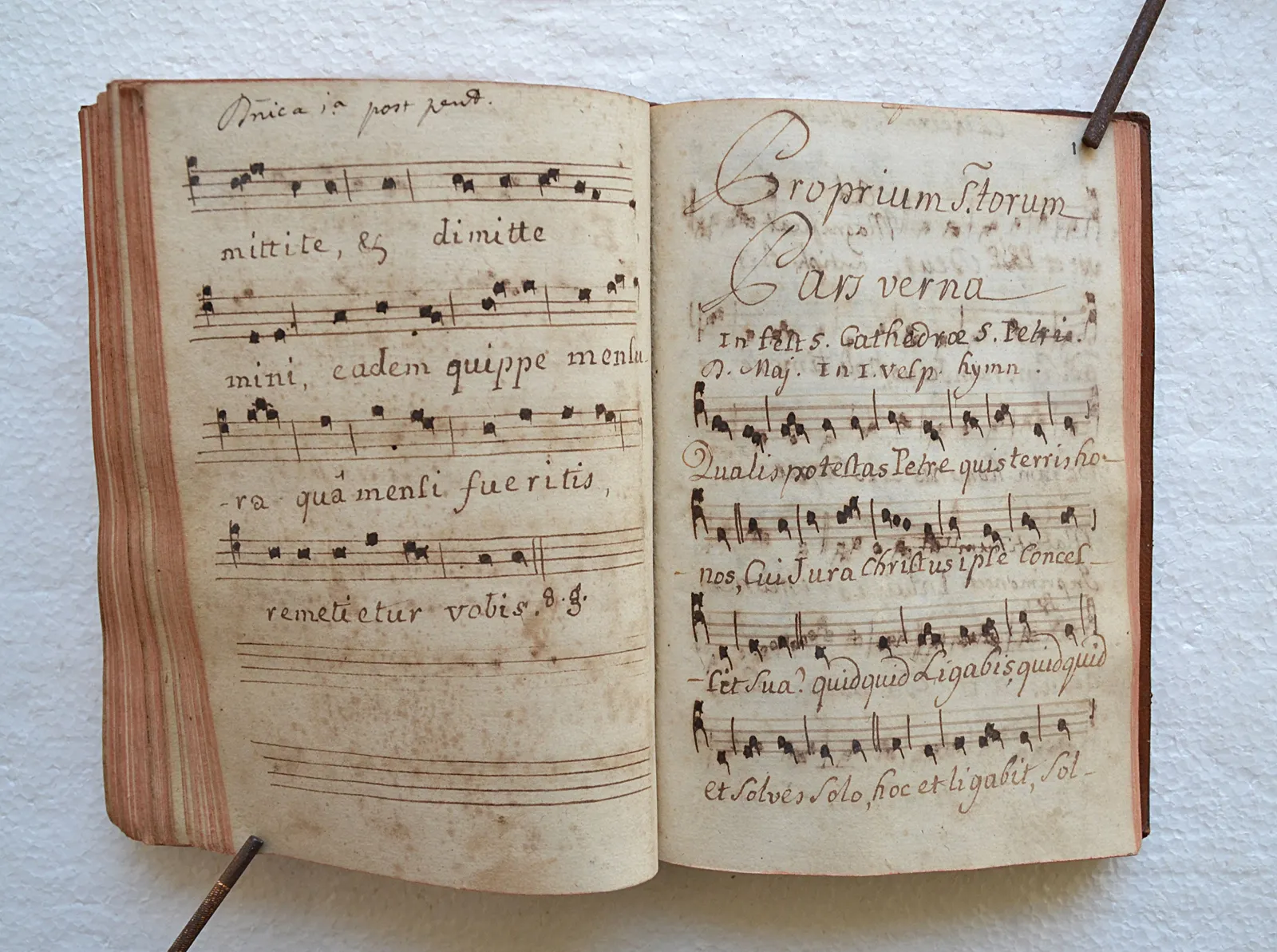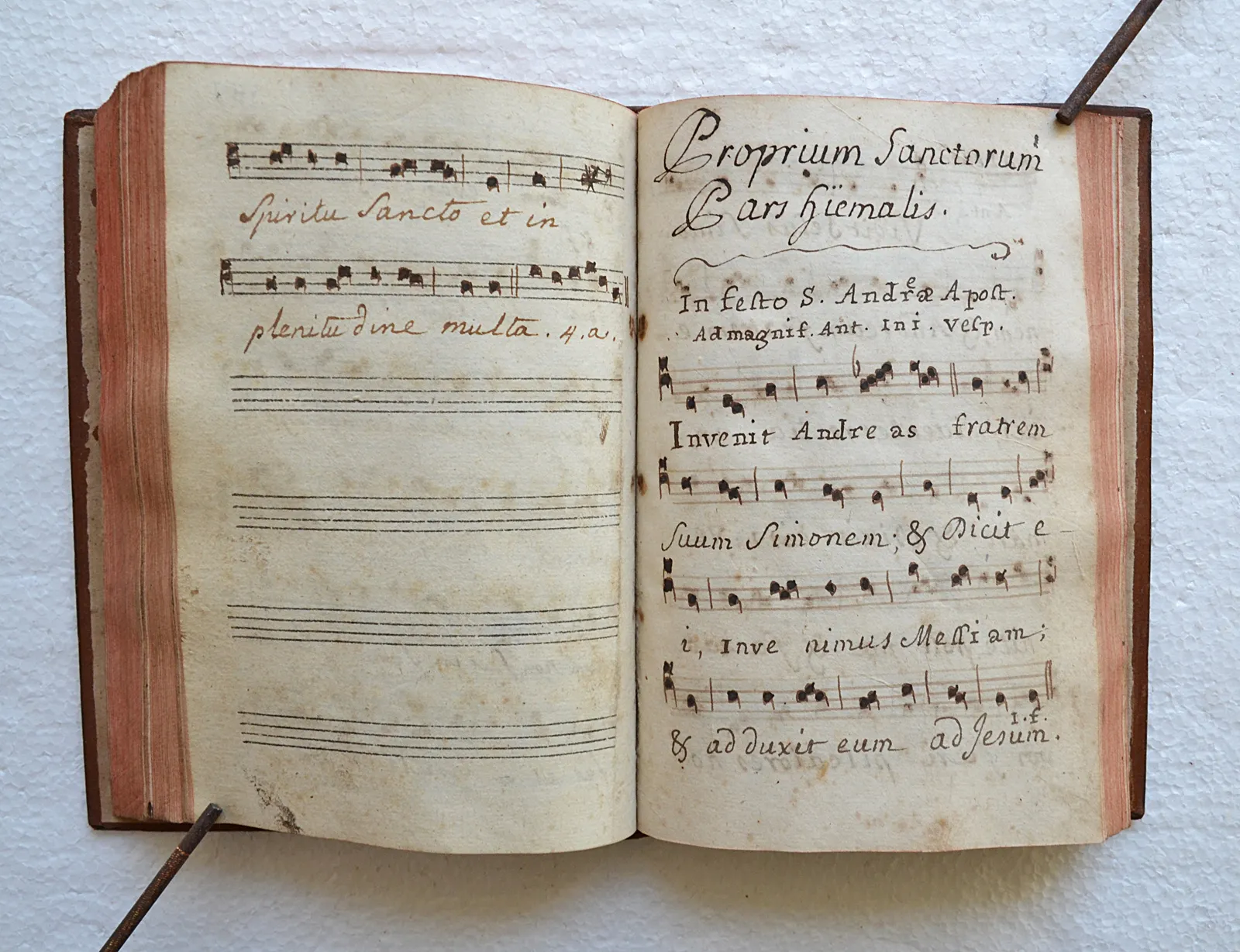 Rares manuscrits du XVIII° siècle, contenant des chants notés (plain-chant) religieux interprétés lors des offices.