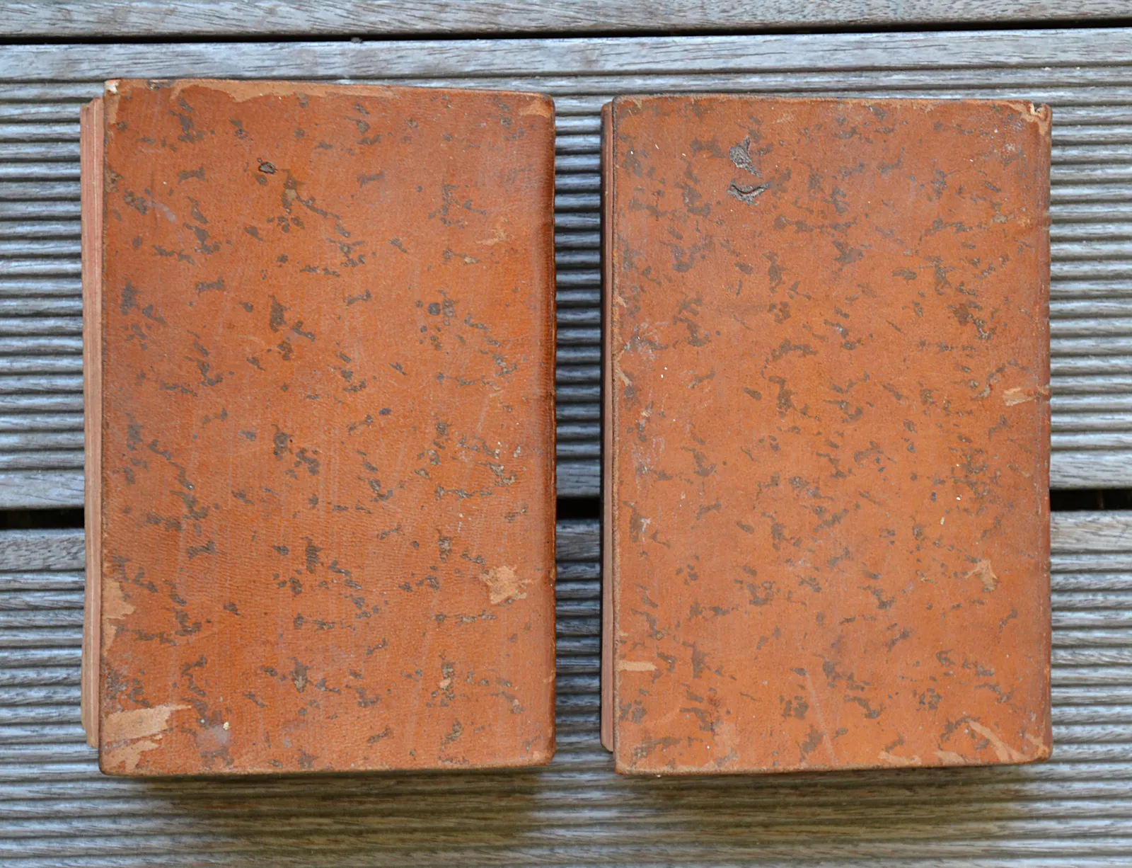 basane fauve marbrée de l’époque, dos à nerfs, tranches rouges (plats « ouverts »).