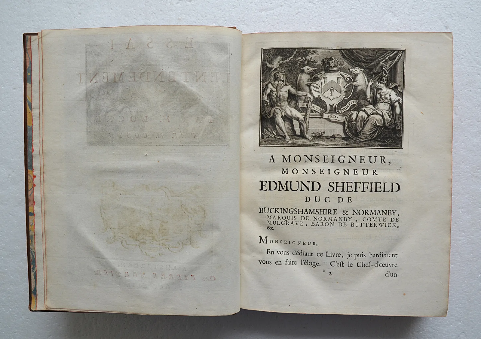Un portrait-frontispice dessiné par G. Kneller, gravé par F. Morellon la Cave, une vignette sur le titre par B. Picart, et un large bandeau allégorique en-tête de la dédicace.