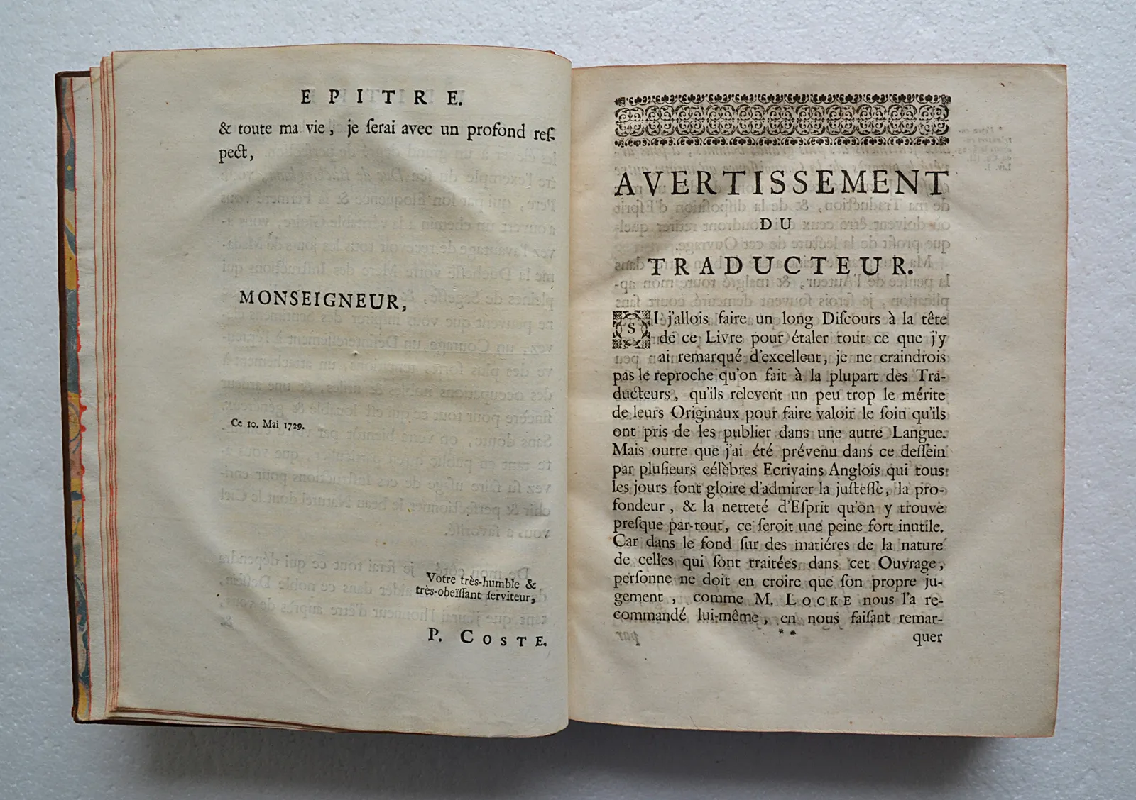 Essai philosophique concernant l’entendement humain, ou l’on montre quelle est l’étendue de nos connaissances certaines, et la manière dont nous y parvenons. Traduit de l’anglois par M. Coste. Quatrième édition, revue, corrigée, & augmentée de quelques additions importantes de l’auteur qui n’ont paru qu’après sa mort, & de plusieurs remarques du traducteur, dont quelque-unes paraissent pour la première fois dans cette édition.