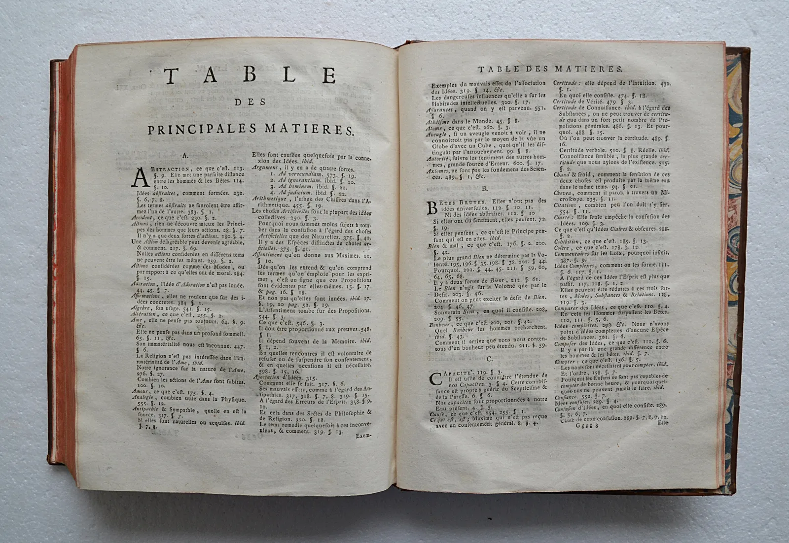 Un volume in-4 (20 x 25,5 cm.) de XLII – 603(1) pp. – (9 ff.) ; veau fauve marbré glacé, dos à nerfs orné, pièces de titre en maroquin rouge, tranches rouges (reliure de l’époque).