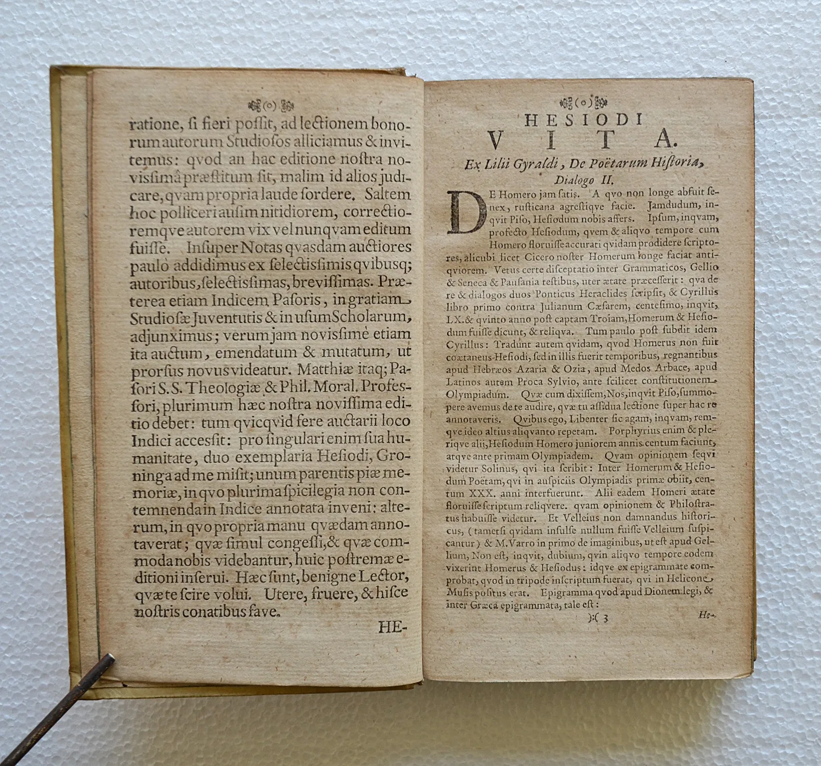 Hesiodi Ascraei, quae extant, cim notis, ex probatissimis quibusdam autoribus, brevissimis, selectissimisque. Accedit insuper Pasoris Index (…).