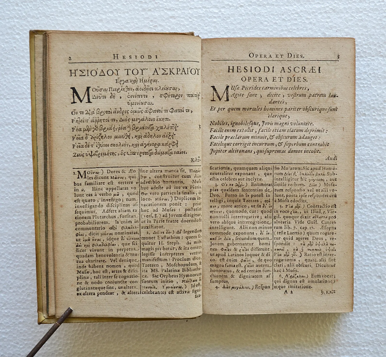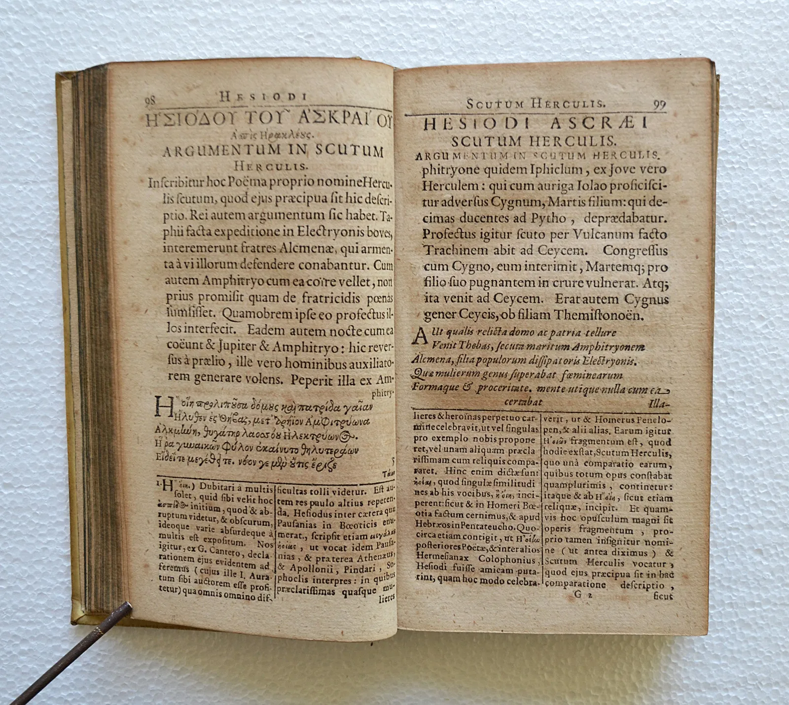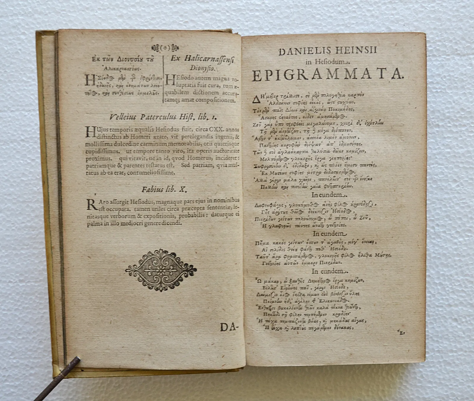 Très rare édition du XVII° siècle des œuvres d’Hésiode, dans son vélin d’origine.
