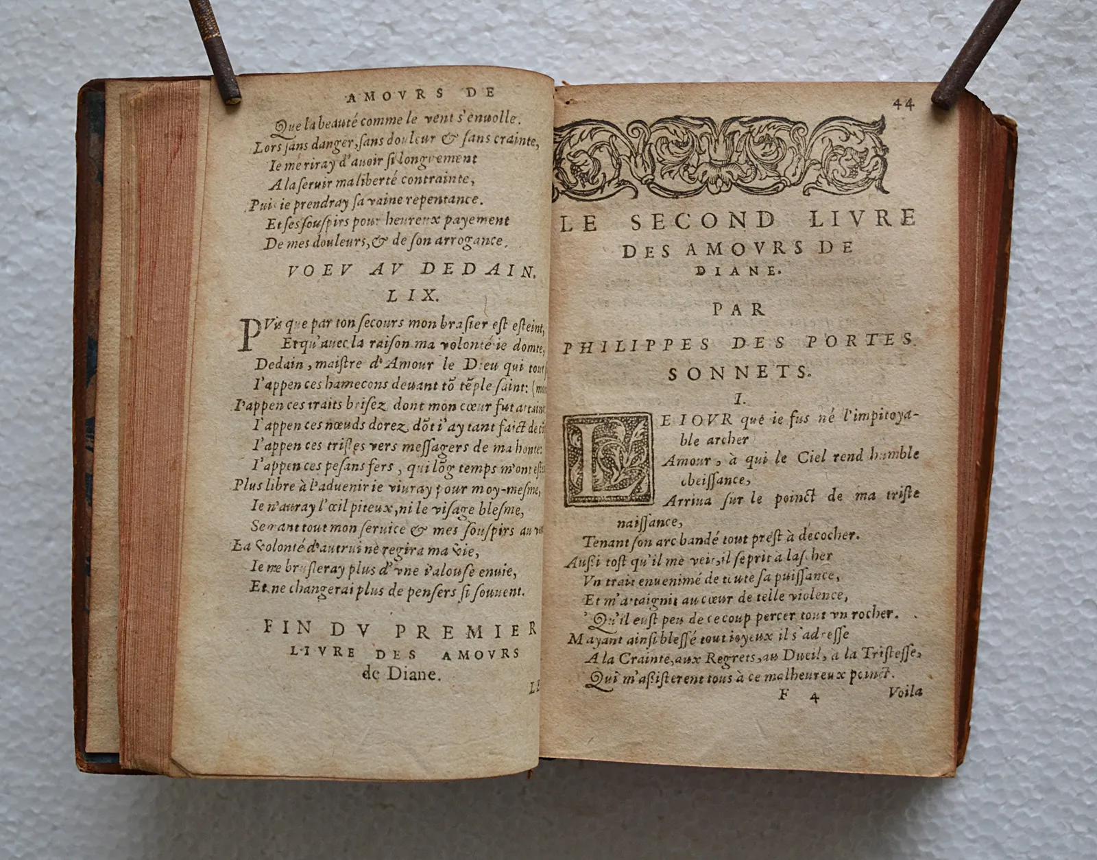 Rare impression lyonnaise du XVI° siècle, des œuvres de Desportes.