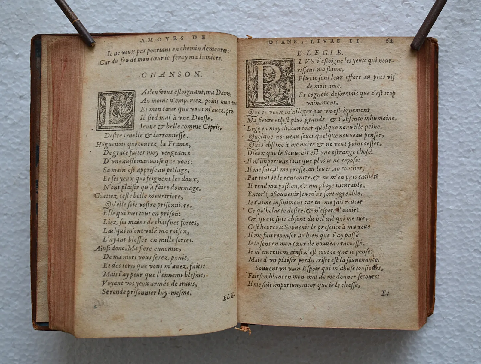 Un volume in-16 (8 x 12 cm.) de : 262 feuillets – (7 ff. Tables) ; basane fauve marbrée, dos à nerfs orné, tranches rouges (reliure du XVIII° siècle).