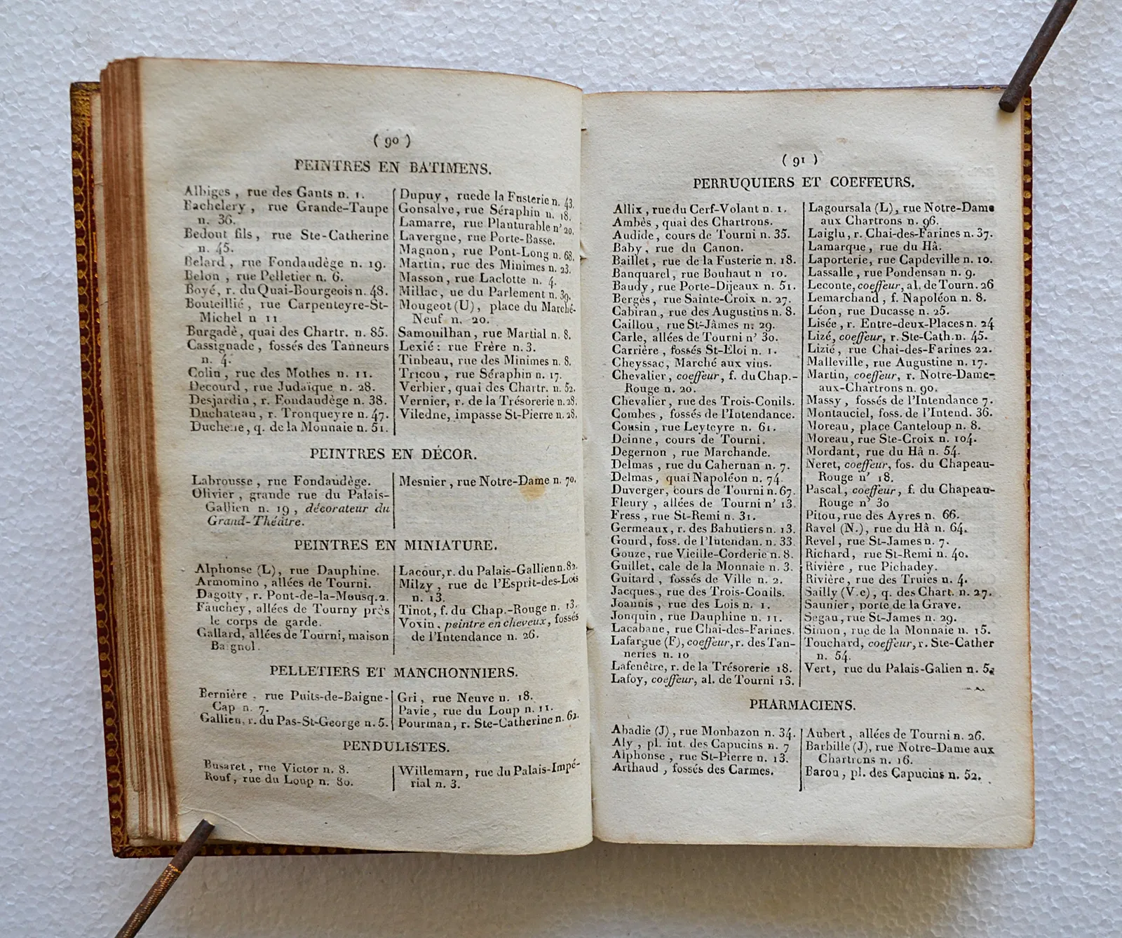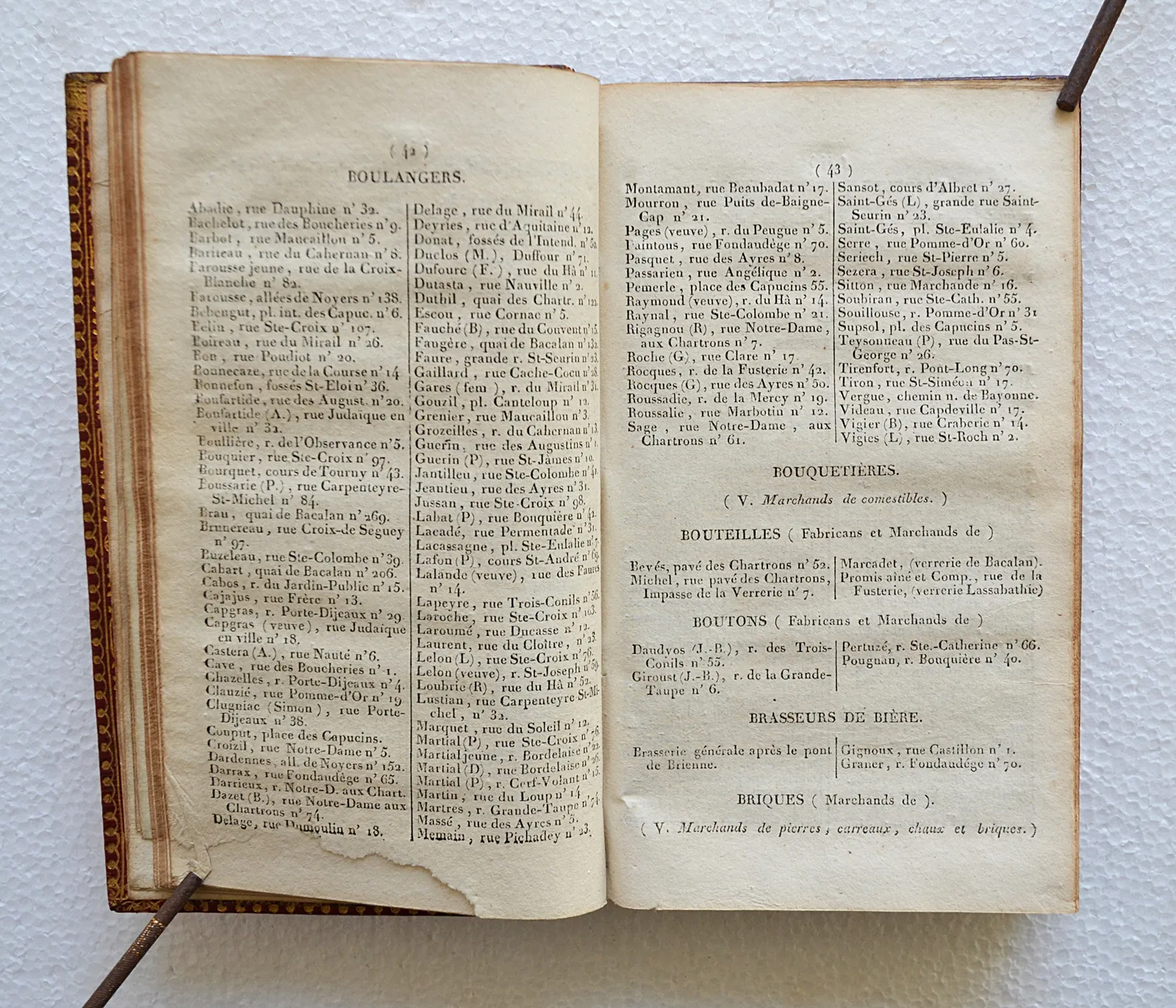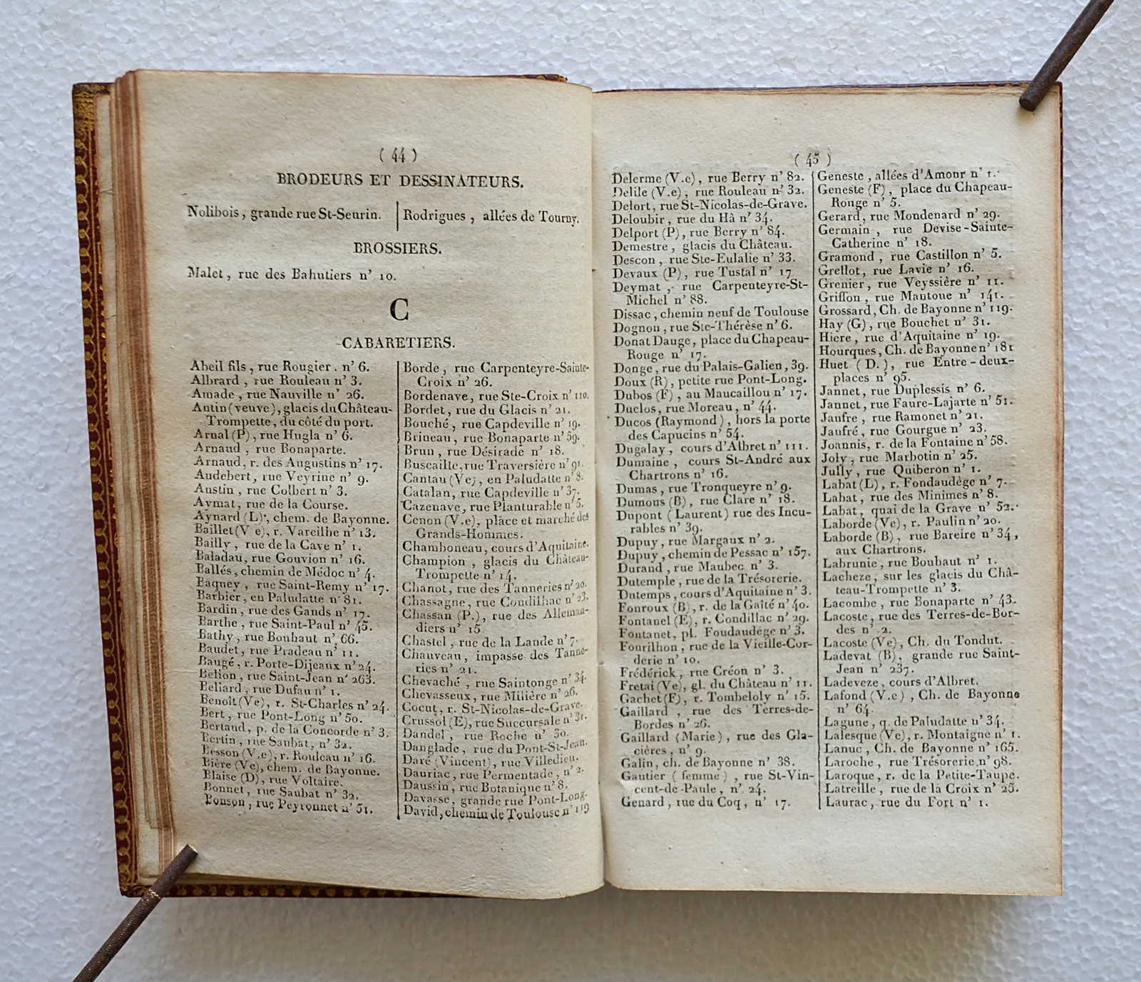 Fine reliure en maroquin rouge d'époque de ce rarissime almanach bordelais de 1811, avec un grand plan de la ville et un tableau des rues.