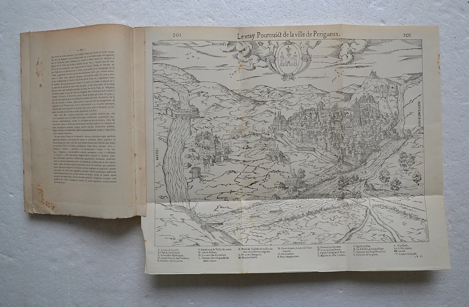 Volume broché avec texte en partie non coupé, illustré de deux planches hors-texte de médailles, pièces et sceaux, et d'une grande carte reliée in fine. Impression de Périgueux, 1908.