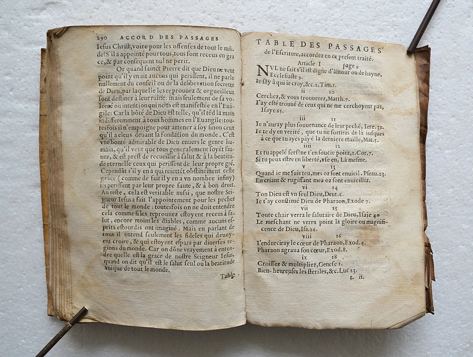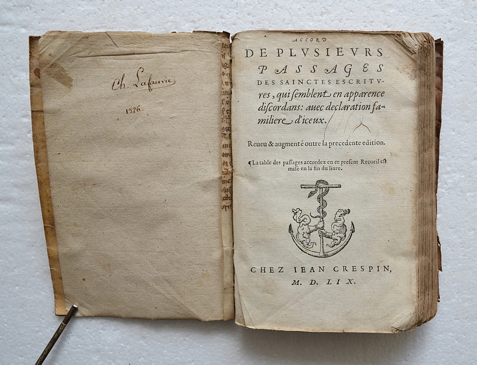 Accord de plusieurs passages des Sainctes Escritures, qui semblent en apparence discordans : avec déclaration familière d’iceux. Revue & augmenté outre la précédente édition. La table des passages accordez en ce présent recueil est mise en la fin du livre.