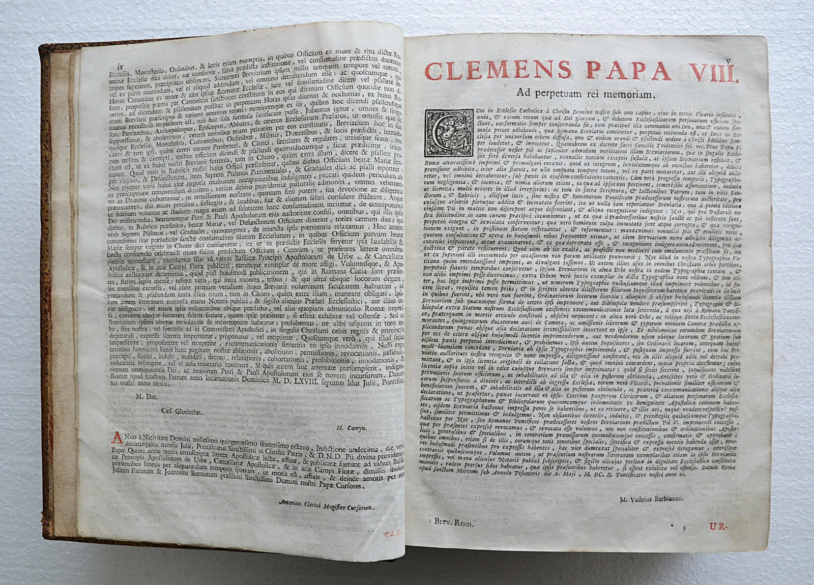 Breviarium Romanum ex decreto sacrosancti Concilii Tridentini restitum, S. PII V. Pontificis maximi – Jussu editum, Clementis VIII. & Urbani VIII. Auctoritate recognitum, in quo officia novissima sanctorum.