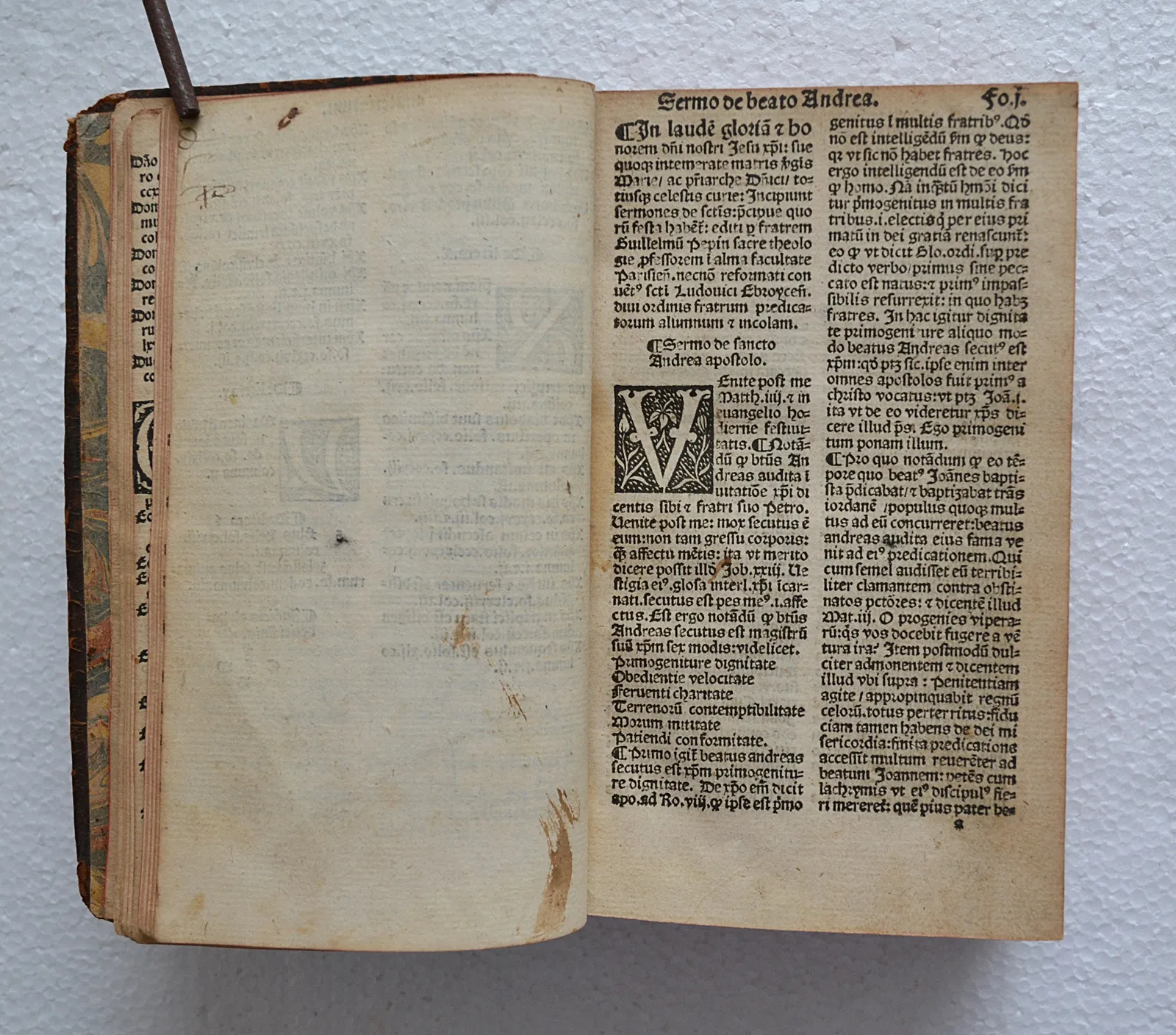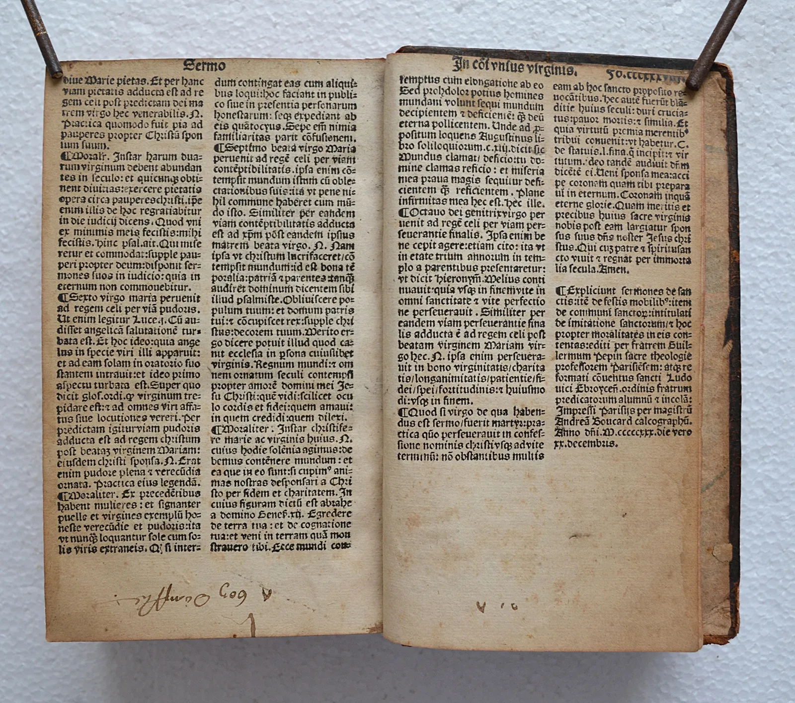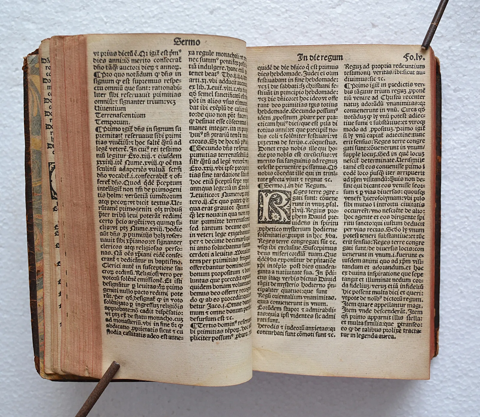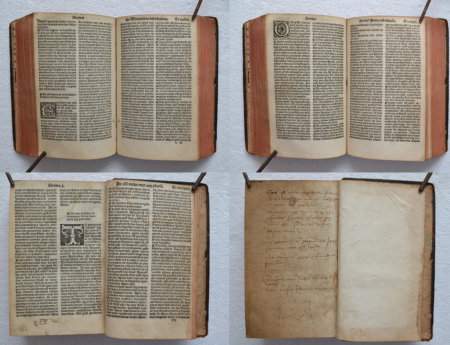 Très rare impression parisienne post-incunable d'André Bocard (1552), contenant de nombreuses lettrines gravées sur bois. Imposant sermonnaire du dominicain Guillaume Pépin, texte en très bon état de conservation.
