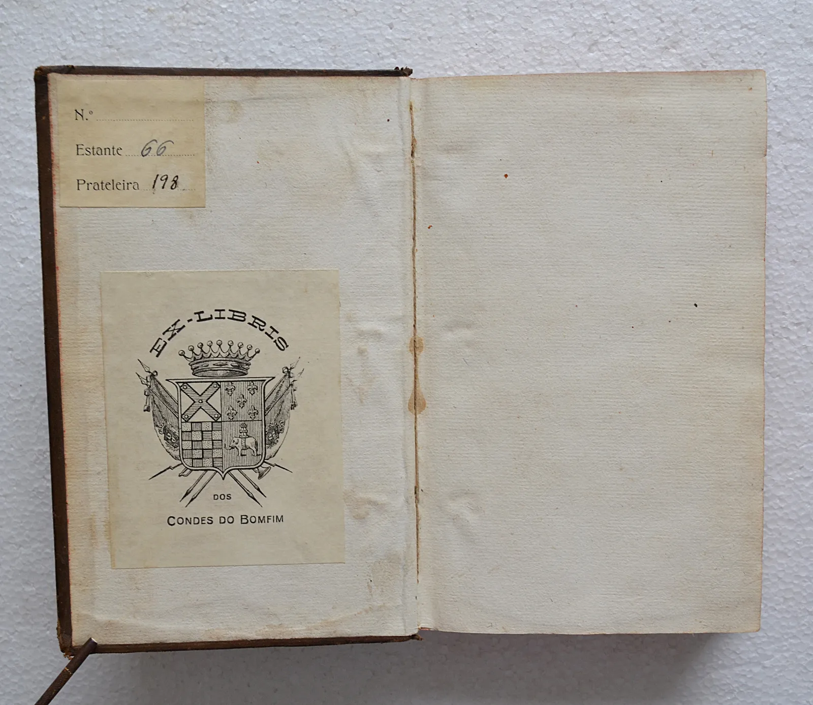 Appartenance : Dos Condes do Bomfim (ex-libris héraldique collé sur les premiers contreplats).