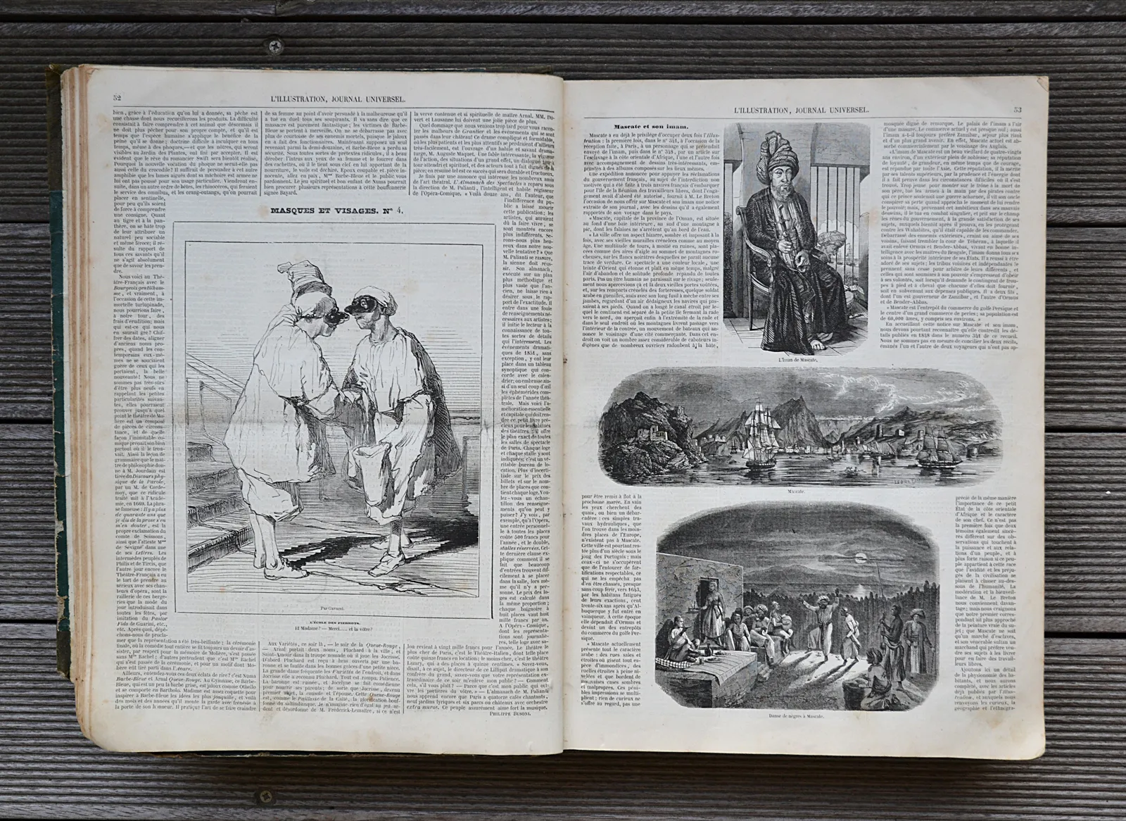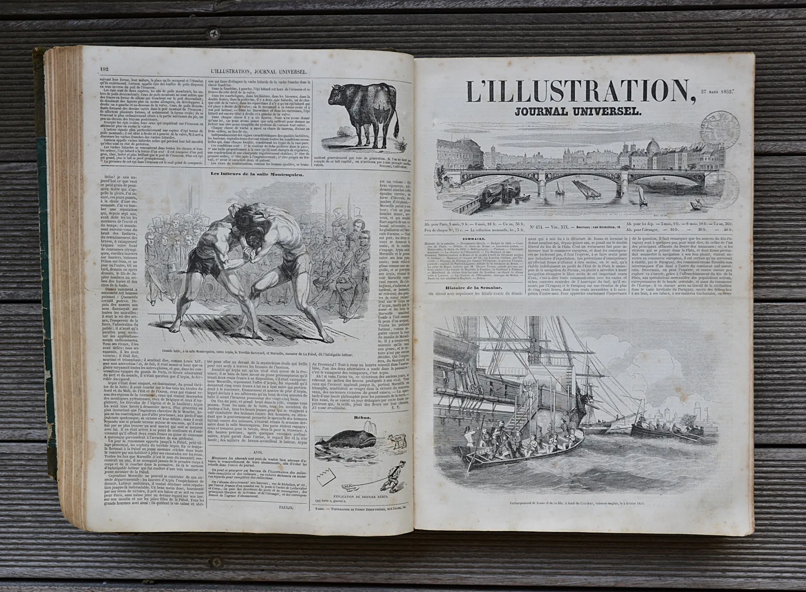 Bon ensemble de 52 numéros de l’année 1852, de ce périodique majeur, la plus vaste et la plus importante entreprise de presse française, source inépuisable de renseignements et d’iconographie.