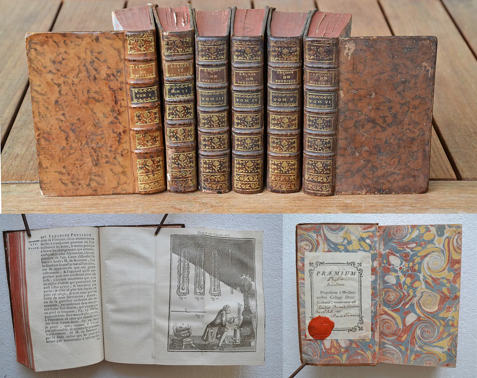 Provenance : Collège des jésuites des Godrans à Dijon (ex-praemium et cachet de cire collés sur la première contregarde du T1 : second prix de physique de Claude Durand en 1780).