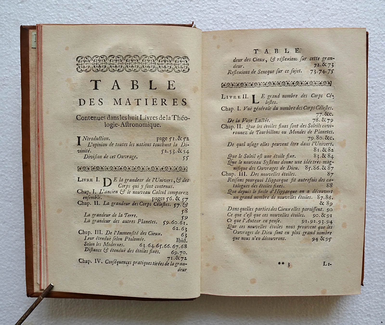 Magnifique exemplaire aux armes du comte von Heberstein en maroquin fauve, trois planches repliées du système solaire, de la lune et de Saturne.