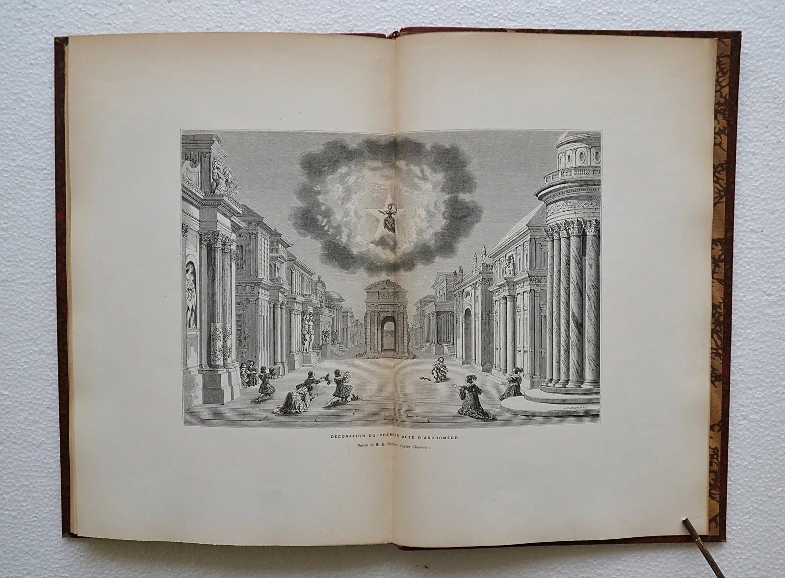 Exemplaire sur papier vergé en demi-chagrin rouge, bien complet du très rare album in-4 avec planches des théâtres, décorations et costumes.
