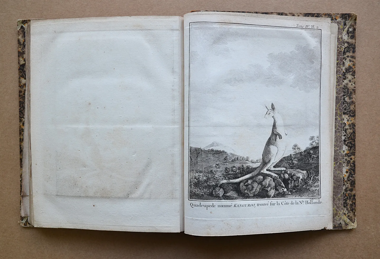 Coiffe supérieure absente ; il manque la première carte et trois planches (4 / 7 / 14) ; la pièce de titre mentionne par erreur « segond » (sic) voyage, alors qu’il s’agit du premier voyage de Cook.