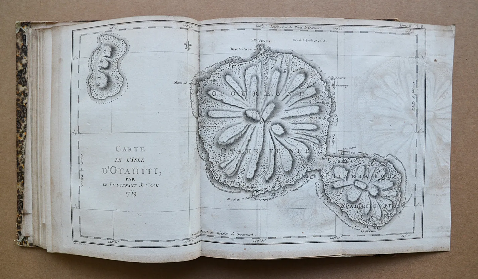 Cartes et figures des voyages entrepris par ordre de Sa Majesté Britannique, actuellement régnante ; pour faire des découvertes dans l’hémisphère méridional, et successivement exécutés par le Commodore Byron, le capitaine Carteret, le capitaine Wallis & le capitaine Cook, dans les vaisseaux le Dauphin, le Swallow & l’Endeavour.