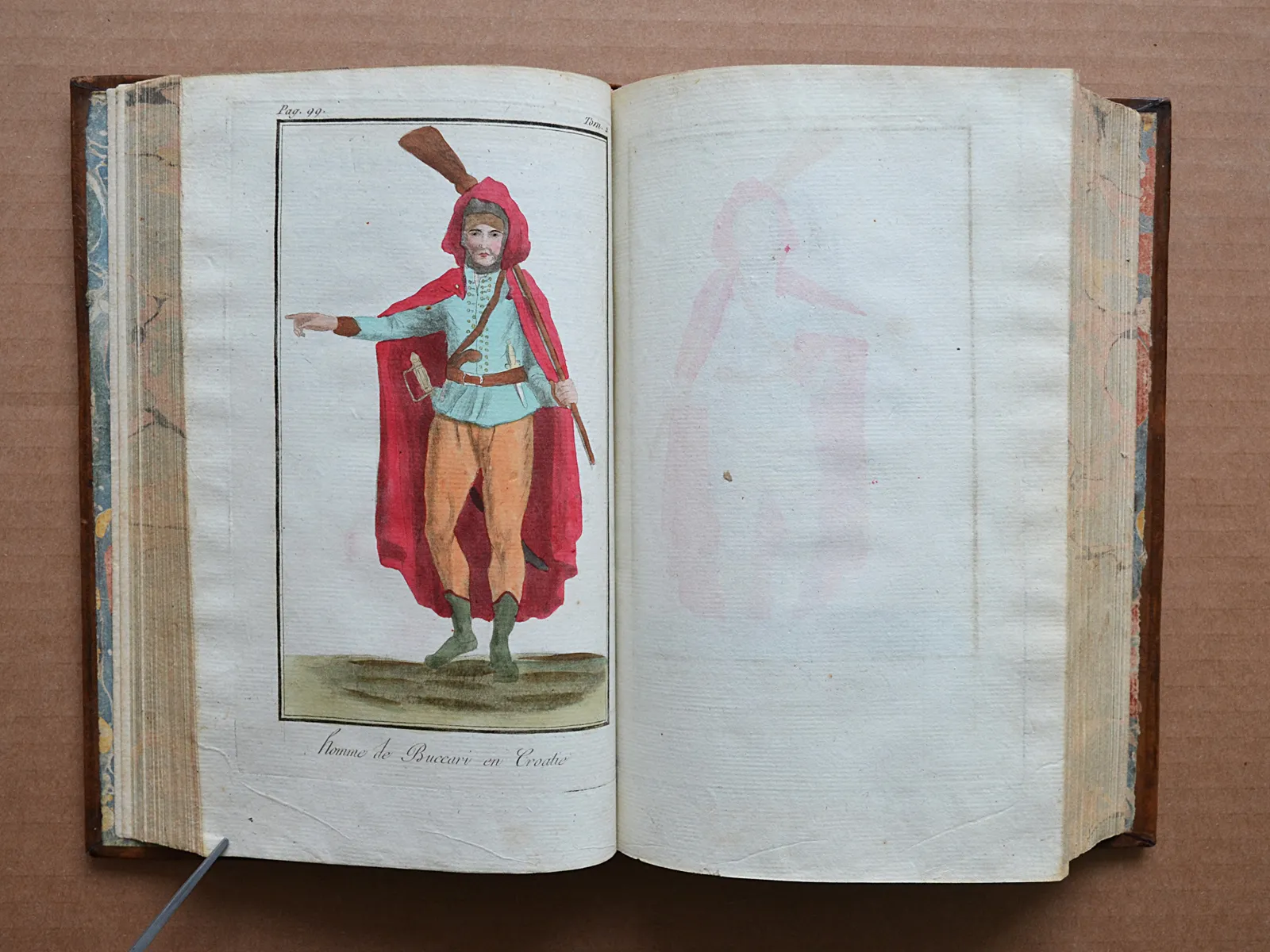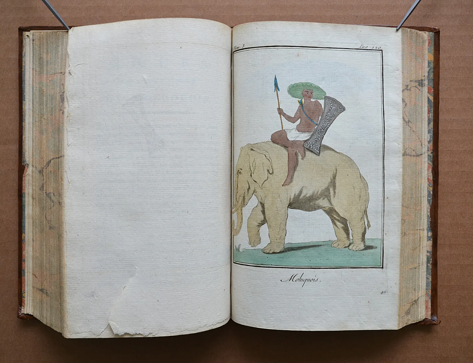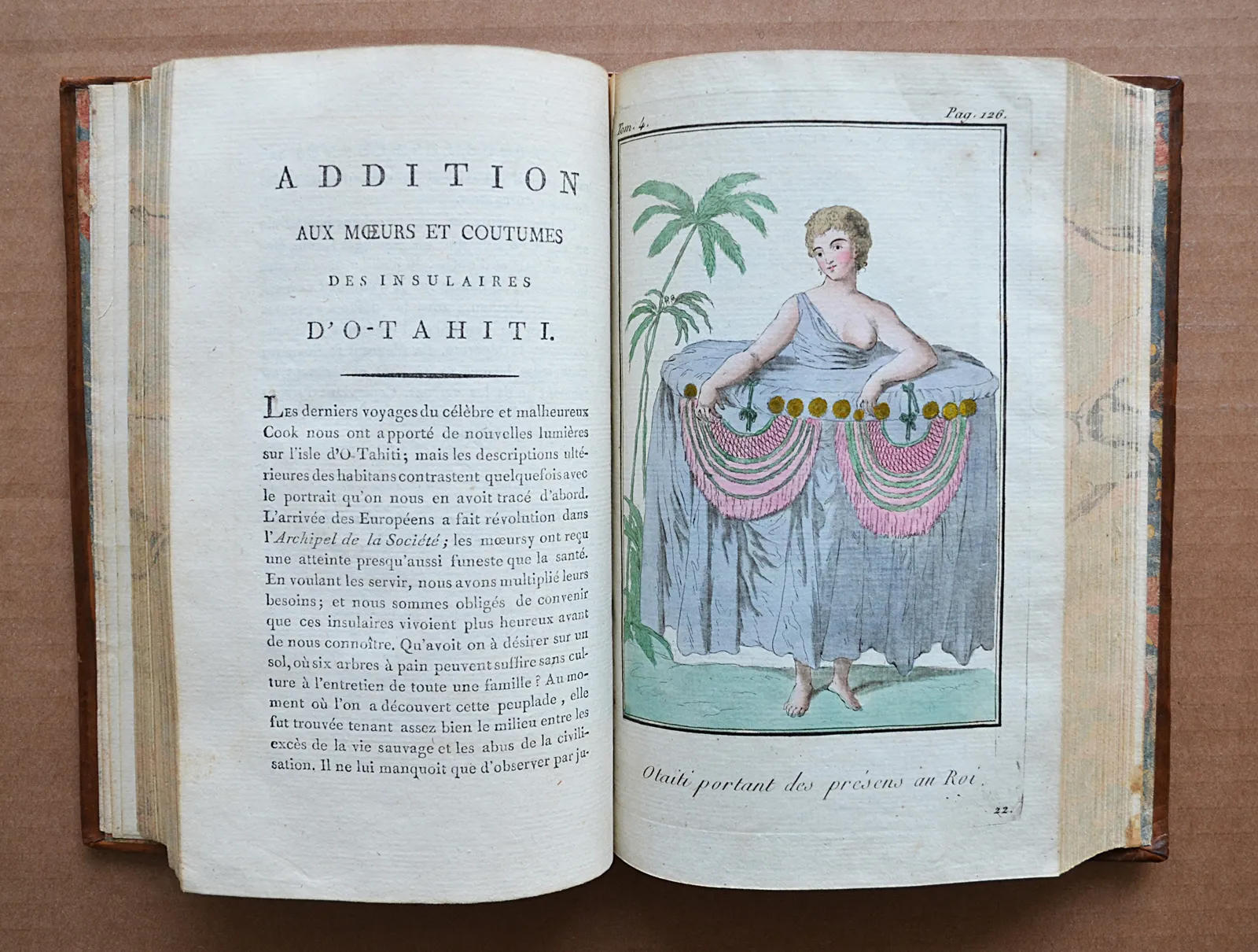 Costumes civils actuels de tous les peuples connus, dessinés d’après nature, gravés et coloriés. Accompagnés d’une notice historique sur les mœurs, usages, coutumes, religions, fêtes, supplices, funérailles, sciences et arts, commerce, etc. de chaque peuple. Rédigés par Sylvain Maréchal. Seconde édition, revue et corrigée.