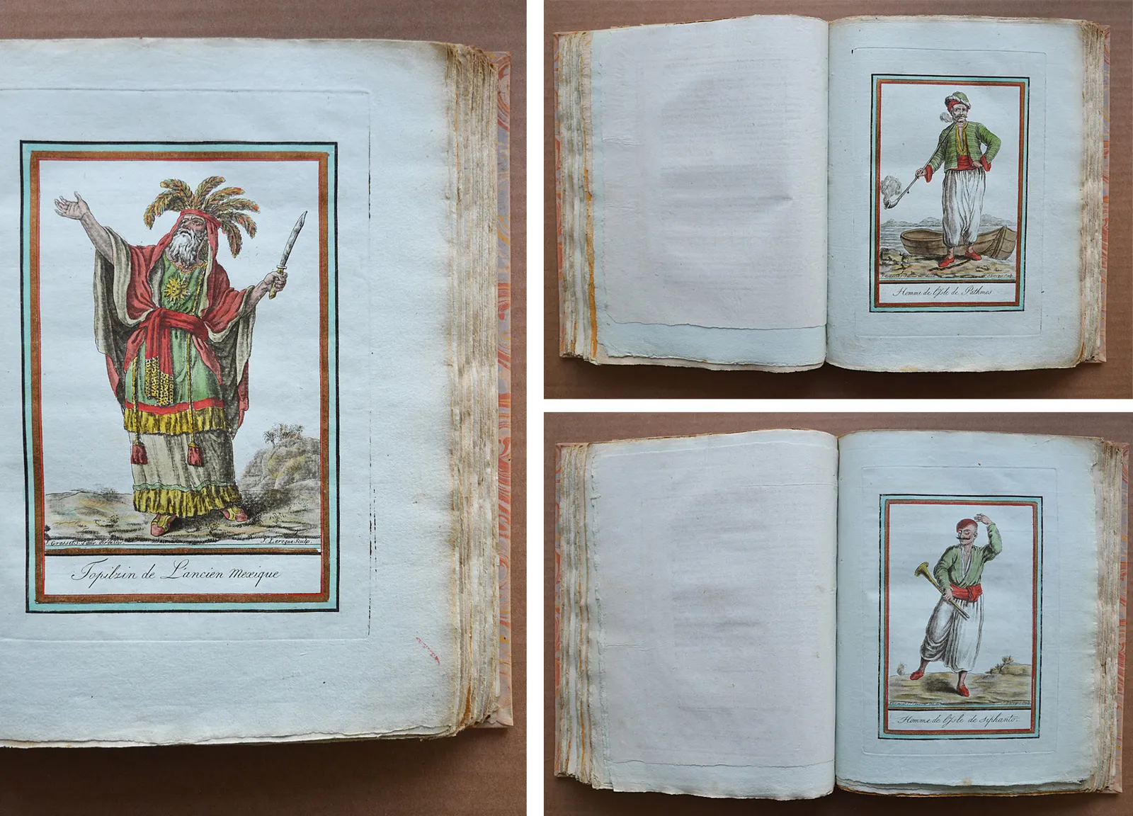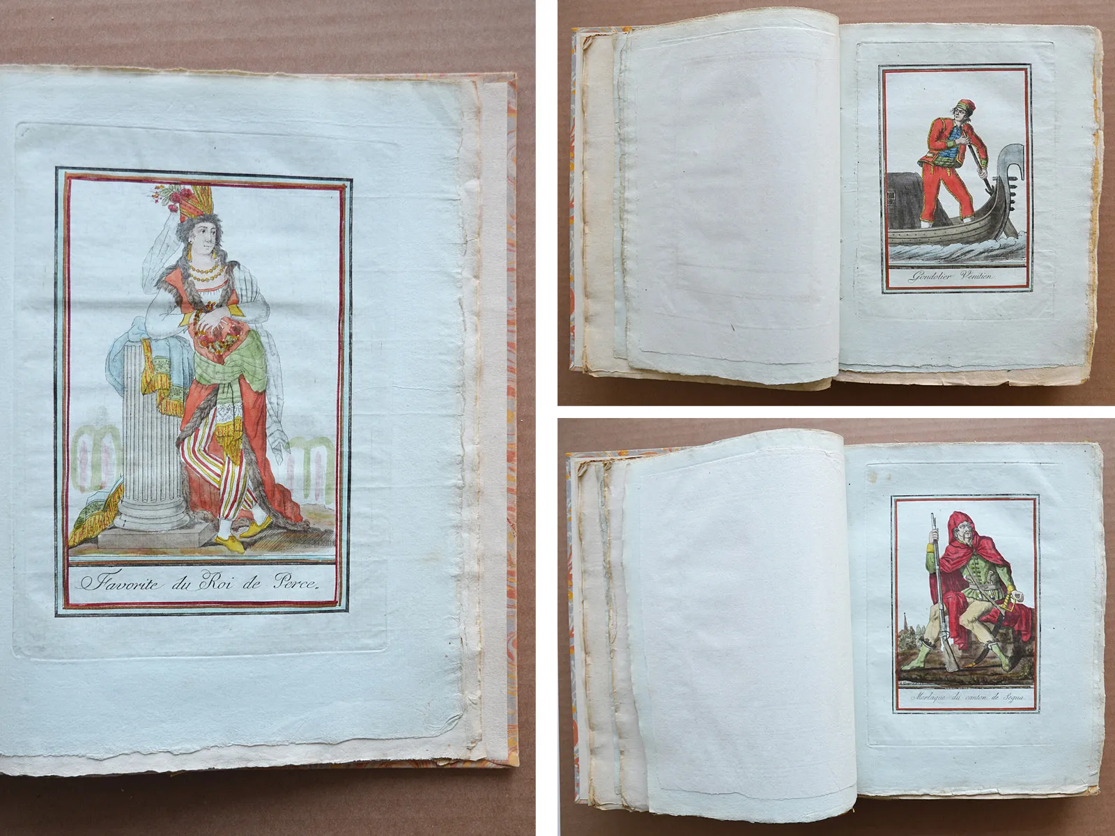 Et la collection complète des costumes, civils, militaires, religieux, dignitaires, de tous les peuples, dessinés d’après nature, gravés avec soin, et coloriés à l’aquarelle.