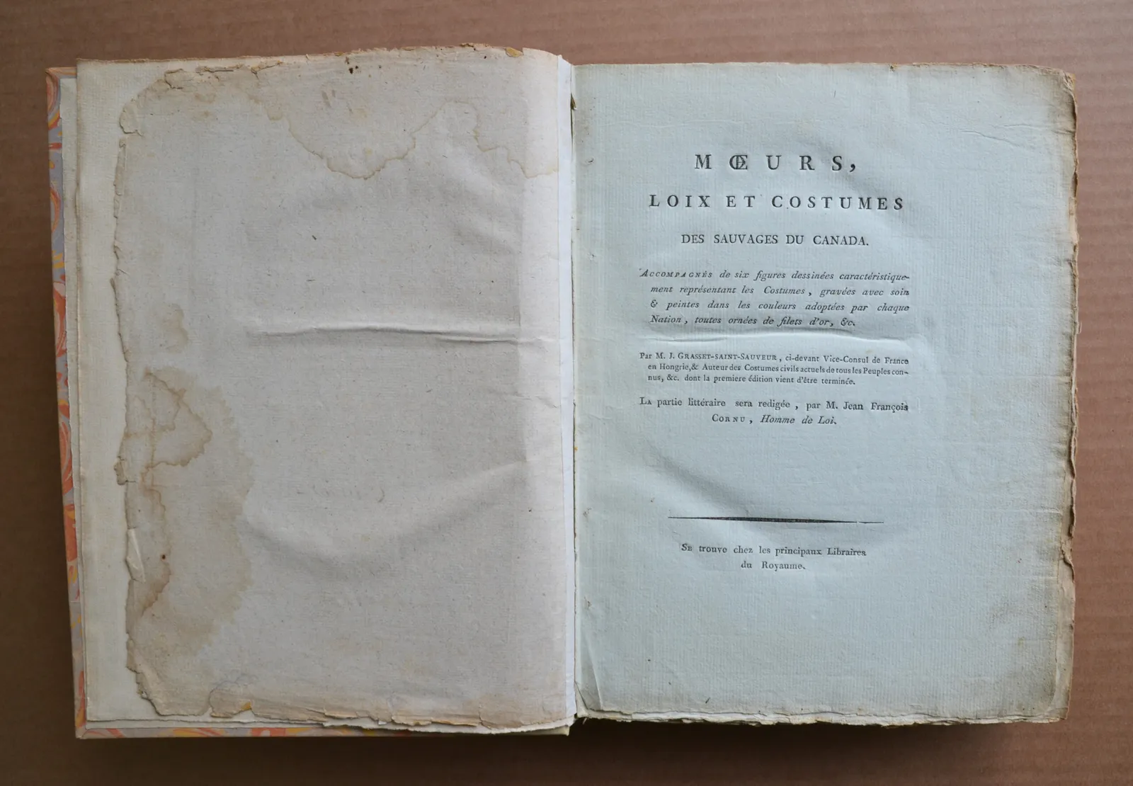 Encyclopédie des voyages contenant l’abrégé historique des mœurs, usages, habitudes domestiques, religion, fêtes, supplices, funérailles, sciences, arts, commerce de tous les peuples. Et la collection complète des costumes, civils, militaires, religieux, dignitaires, de tous les peuples, dessinés d’après nature, gravés avec soin, et coloriés à l’aquarelle. Par M. J. Grasset Saint Sauveur ci devant vice consul de France en Hongrie, et auteur des costumes civils actuels de tous les peuples connus et dont la première édition vient d’être terminée. La partie littéraire est rédigée par M. Jean-François Cornu, homme de loi.