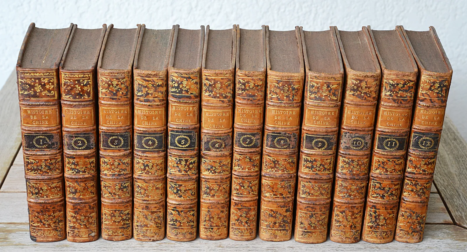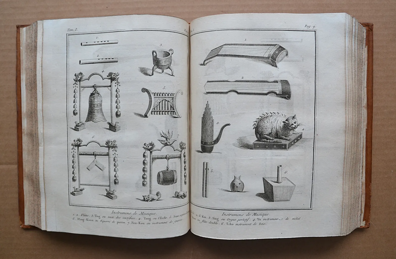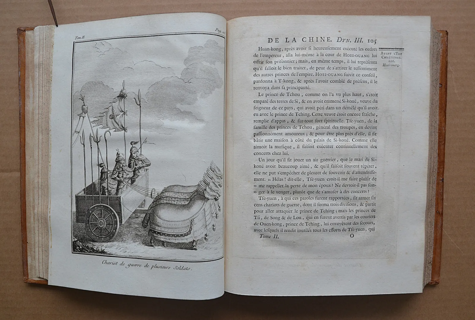 Douze volumes in-4 en veau fauve marbré dans une reliure très décorative de l'époque, illustrés de 16 planches, 3 cartes dépliantes et 5 tableaux de dynasties chinoises.